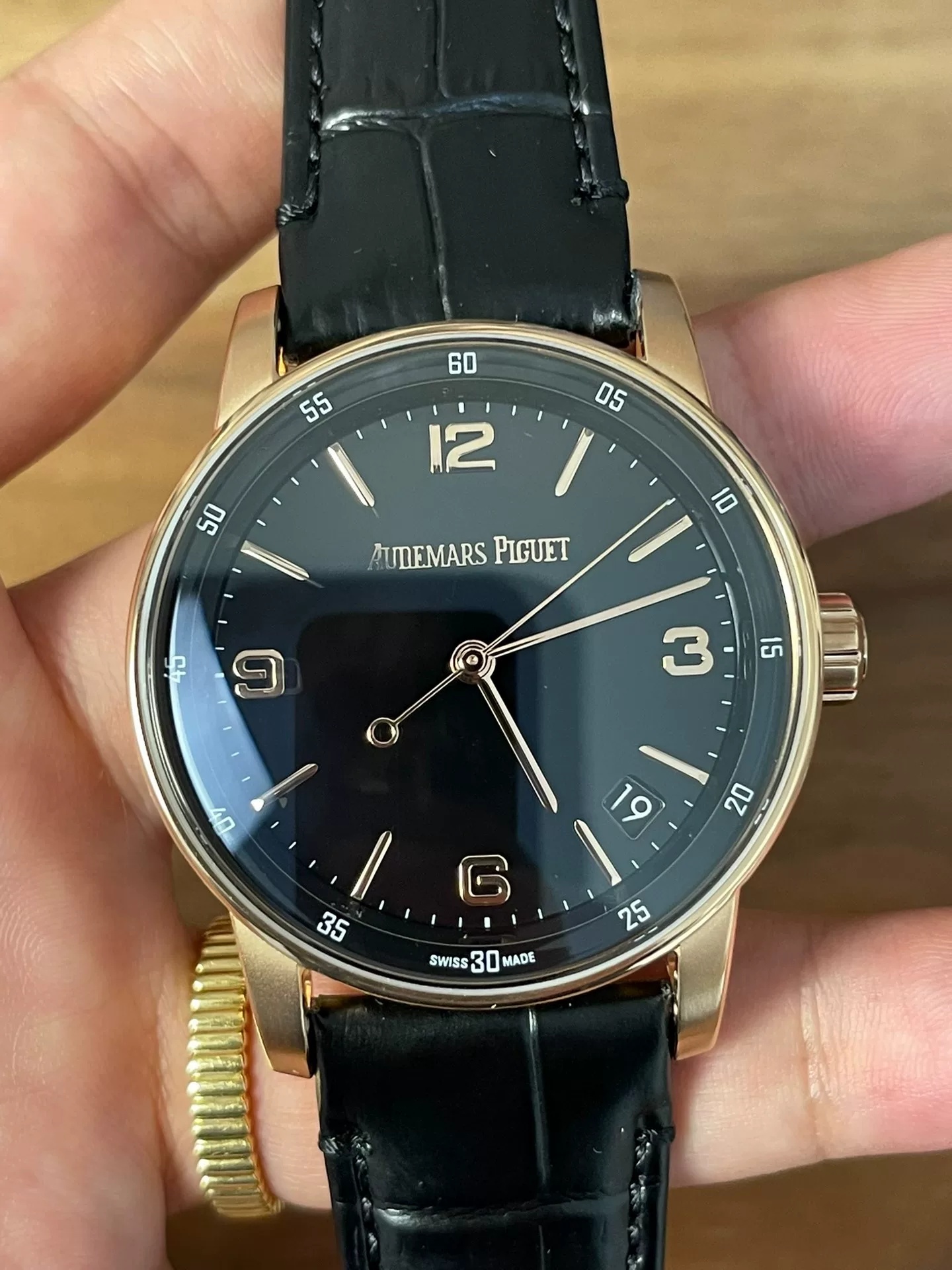 Audemars Piguet CODE 11.59 series black dial big three-hands self-winding watch with a case diameter of 41mm. This size setting makes this watch suitable for men and women at the same time.At the same time, the design of the octagonal and circular fusion of the case also makes this series stand out from the general round case watches.