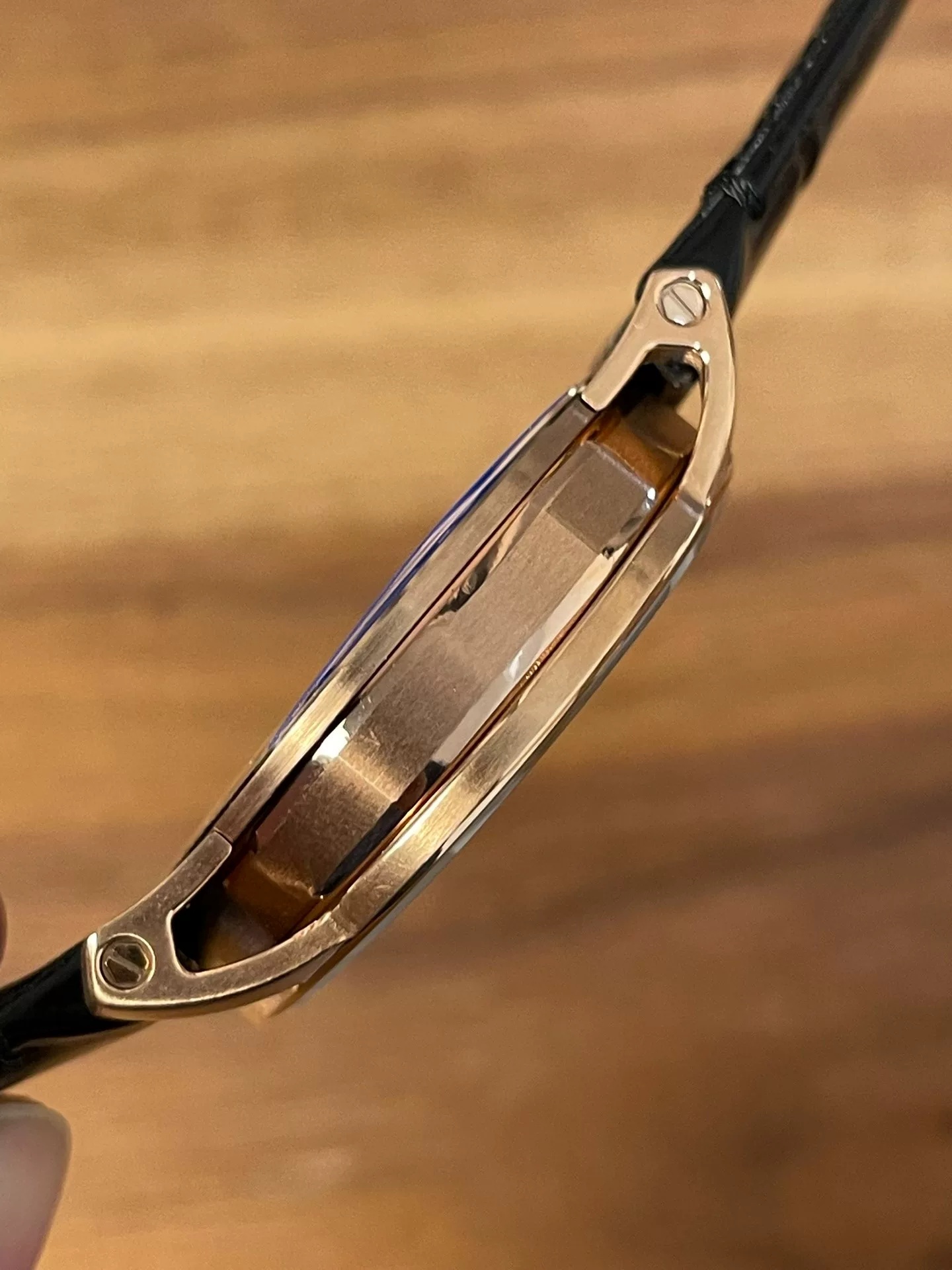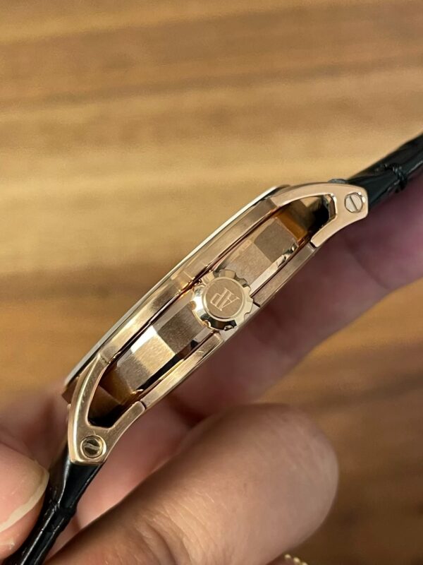 According to the original design of APSF, the octagonal middlepiece is embedded in the round case, the top of the hollow lug is fixed on the ultra-thin bezel by welding, and the bottom of the lug is skillfully connected with the back of the watch.The bezel, lugs and case are satin brushed, beveled chamfered and polished.The thickness of the case is 10.7 mm, which can be easily tucked into the cuff of the shirt.