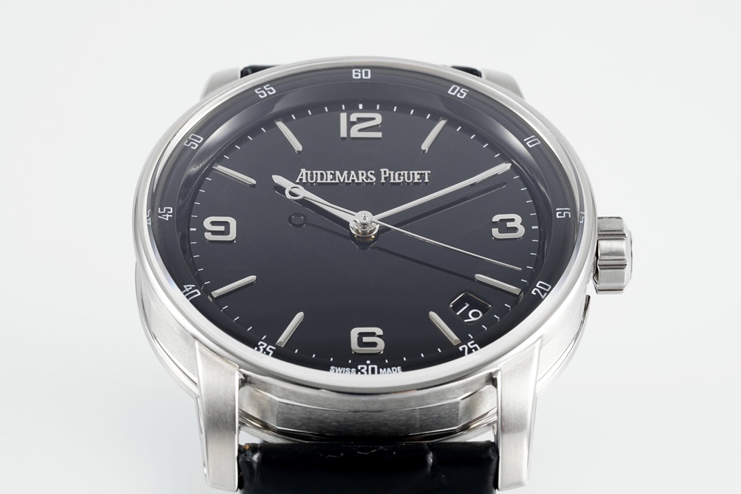 Audemars Piguet CODE 11.59 series black dial big three-hands self-winding watch with a case diameter of 41mm. This size setting makes this watch suitable for men and women at the same time.At the same time, the design of the octagonal and circular fusion of the case also makes this series stand out from the general round case watches.