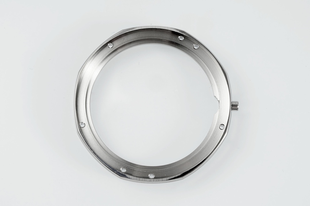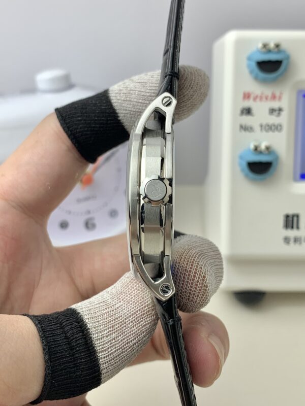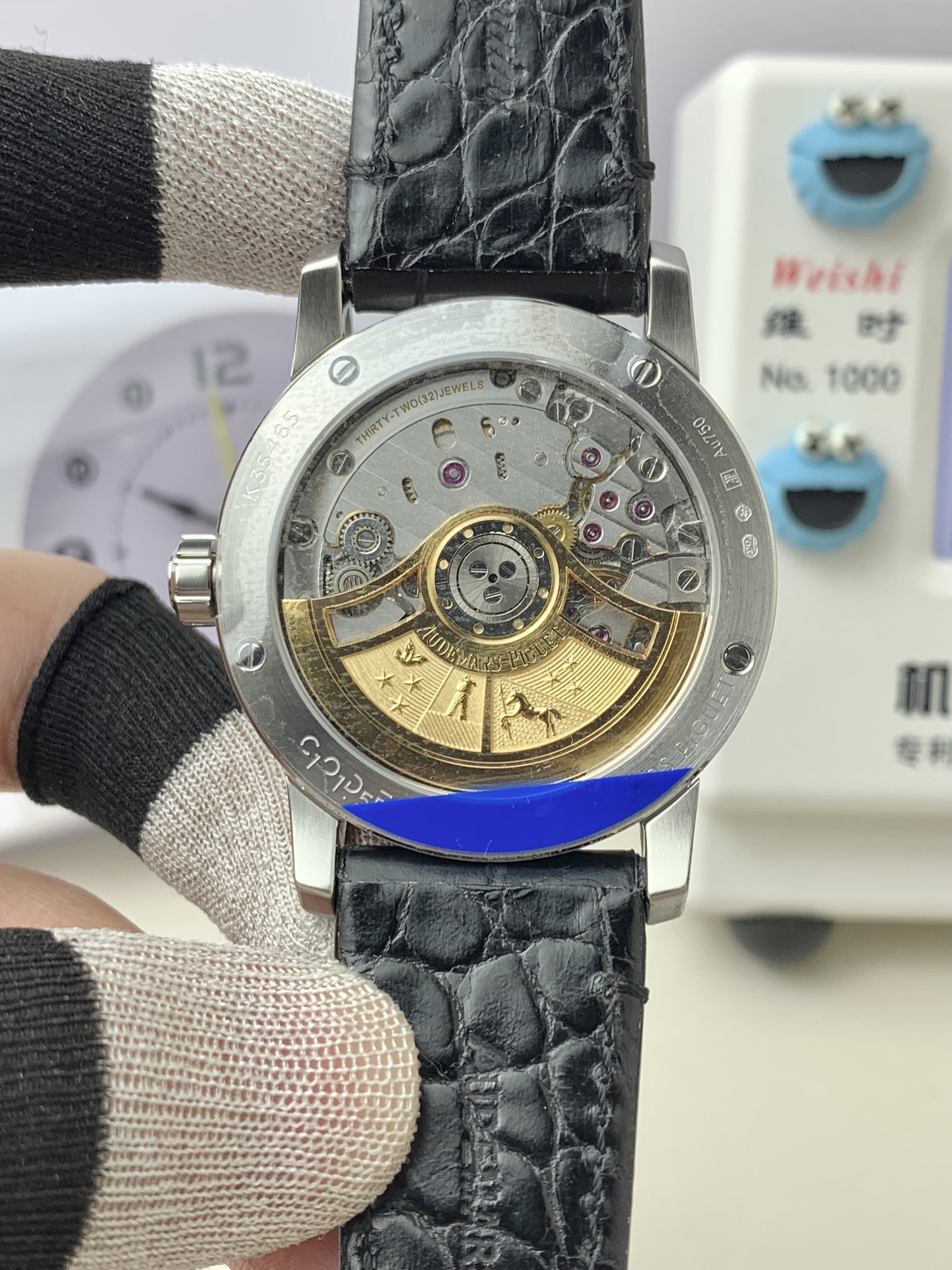 According to the original design of APSF, the octagonal middlepiece is embedded in the round case, the top of the hollow lug is fixed on the ultra-thin bezel by welding, and the bottom of the lug is skillfully connected with the back of the watch.The bezel, lugs and case are satin brushed, beveled chamfered and polished.The thickness of the case is 10.7 mm, which can be easily tucked into the cuff of the shirt.