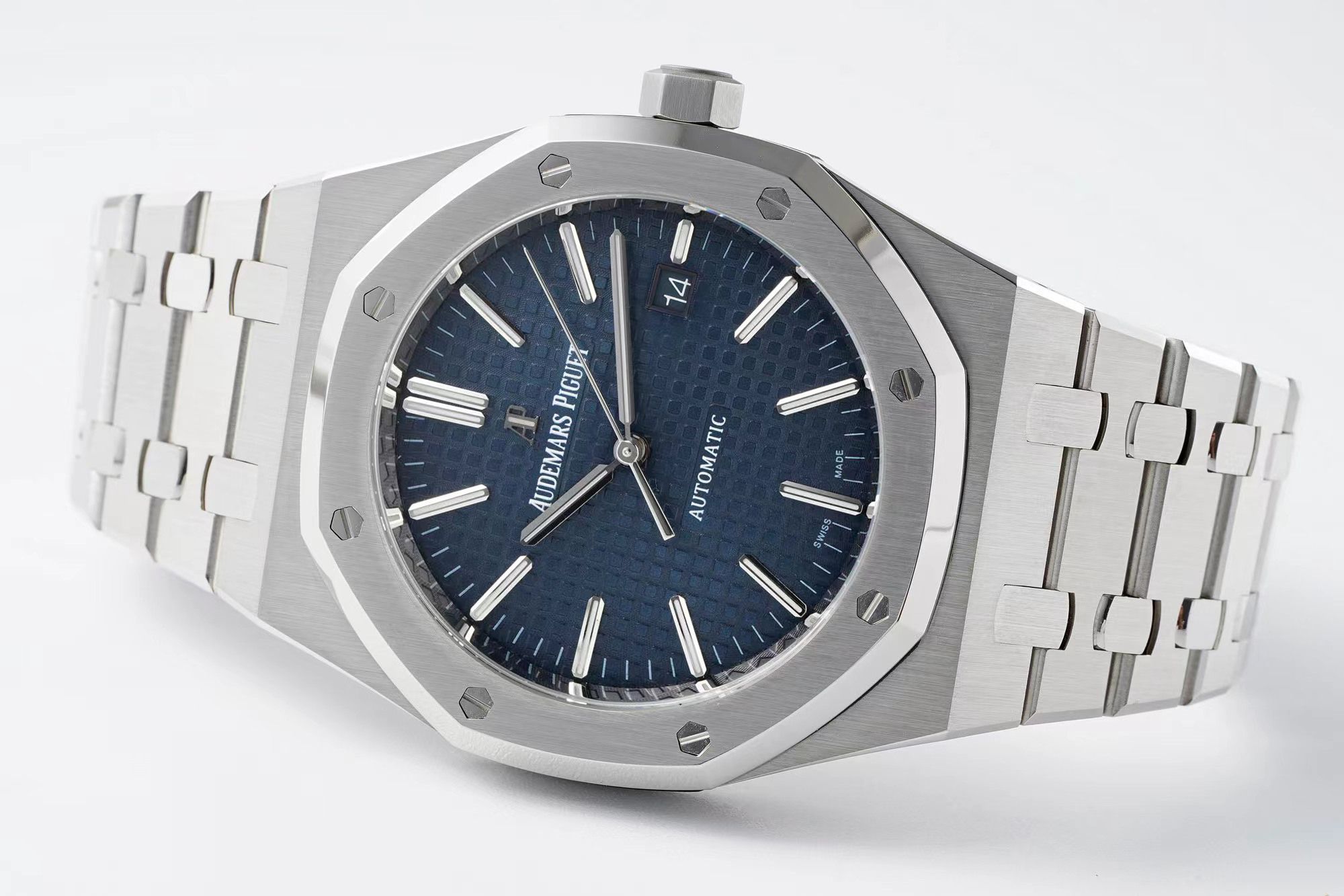 DIAL COLOR: Blue checkered dial with stick markers(polished rehaut same as genuine)