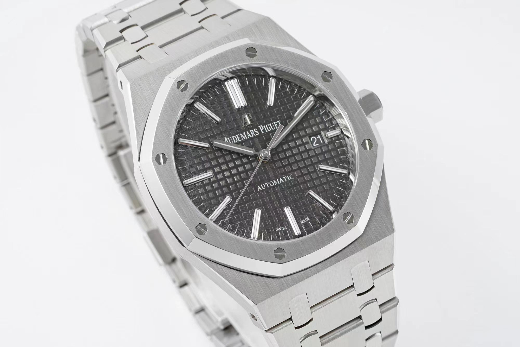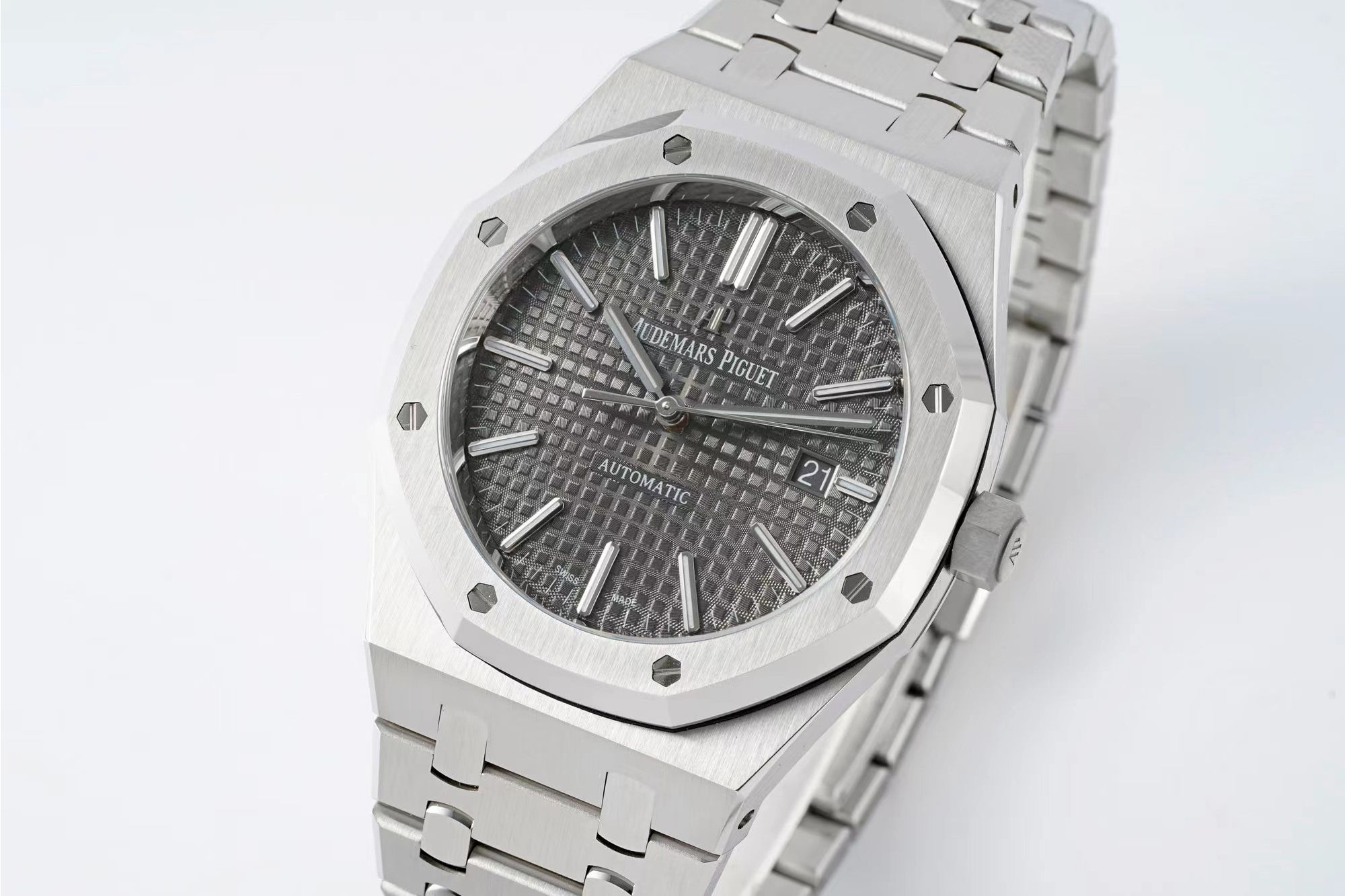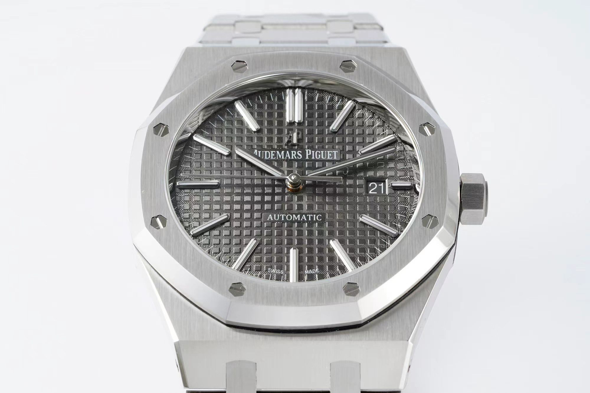 DIAL COLOR: Grey checkered dial with stick markers(polished rehaut same as genuine)