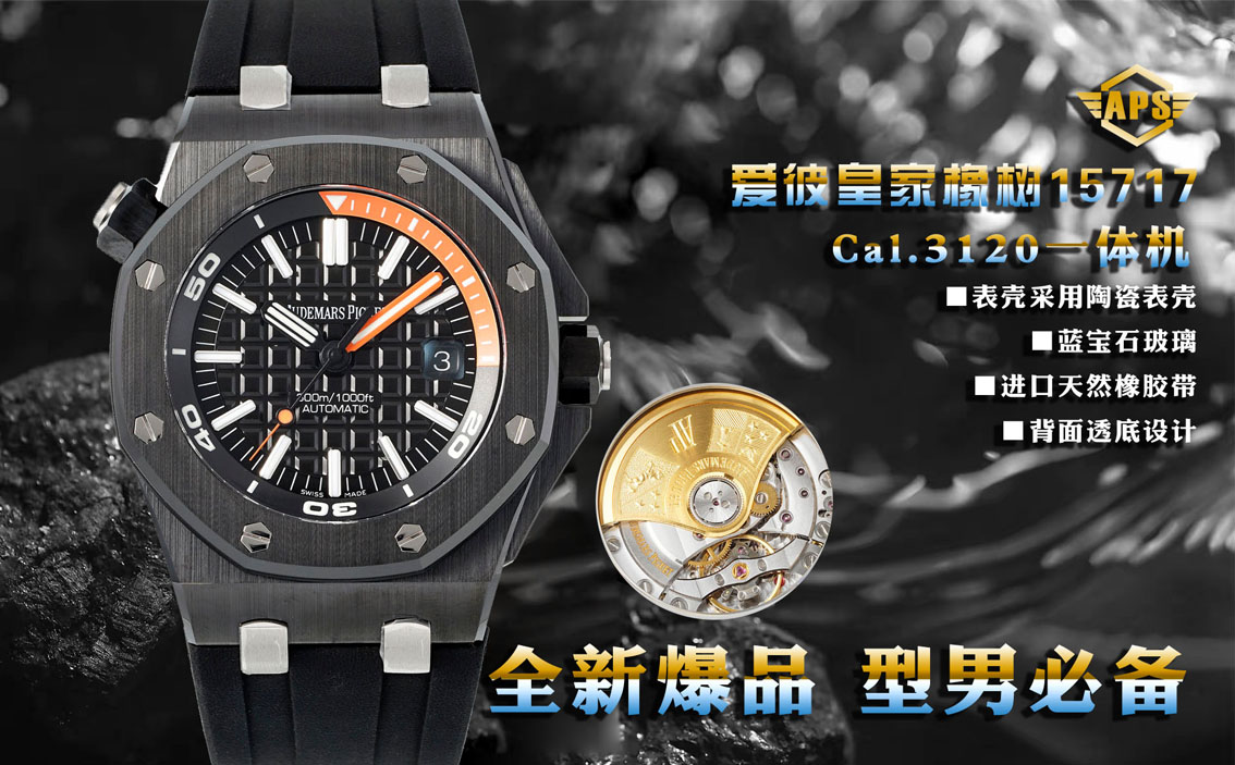 Audemars Piguet-Royal Oak Diver 15707CE 42mm Black Ceramic/RU Black Dial APSF SA3120 Automatic