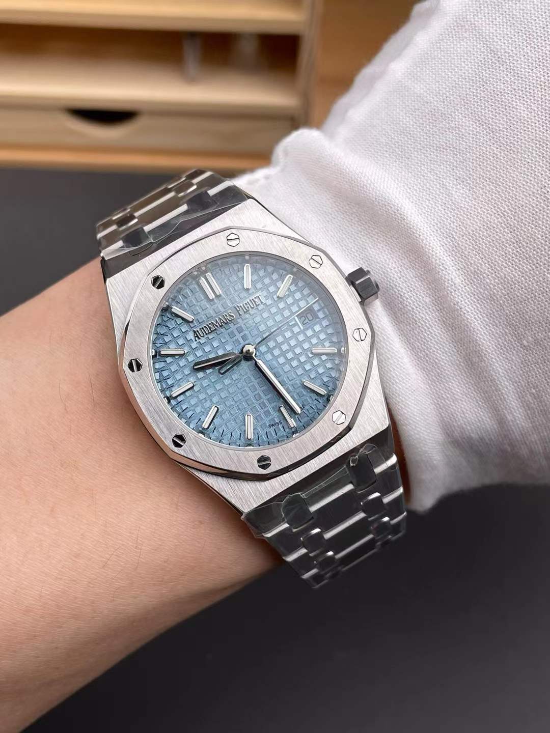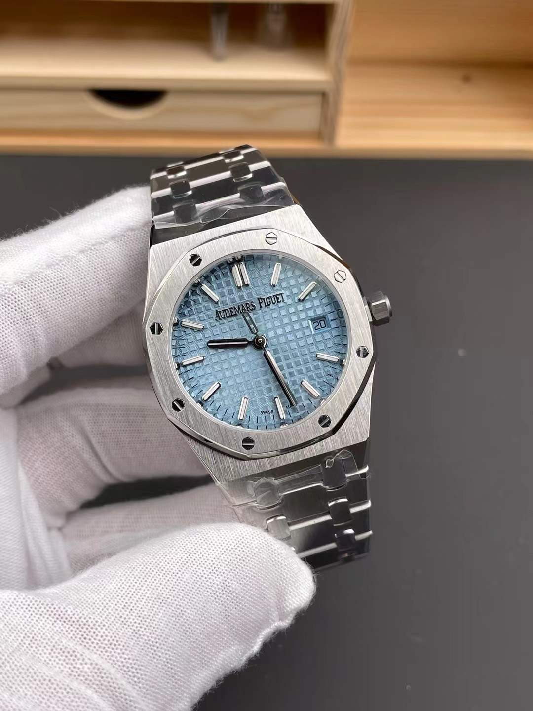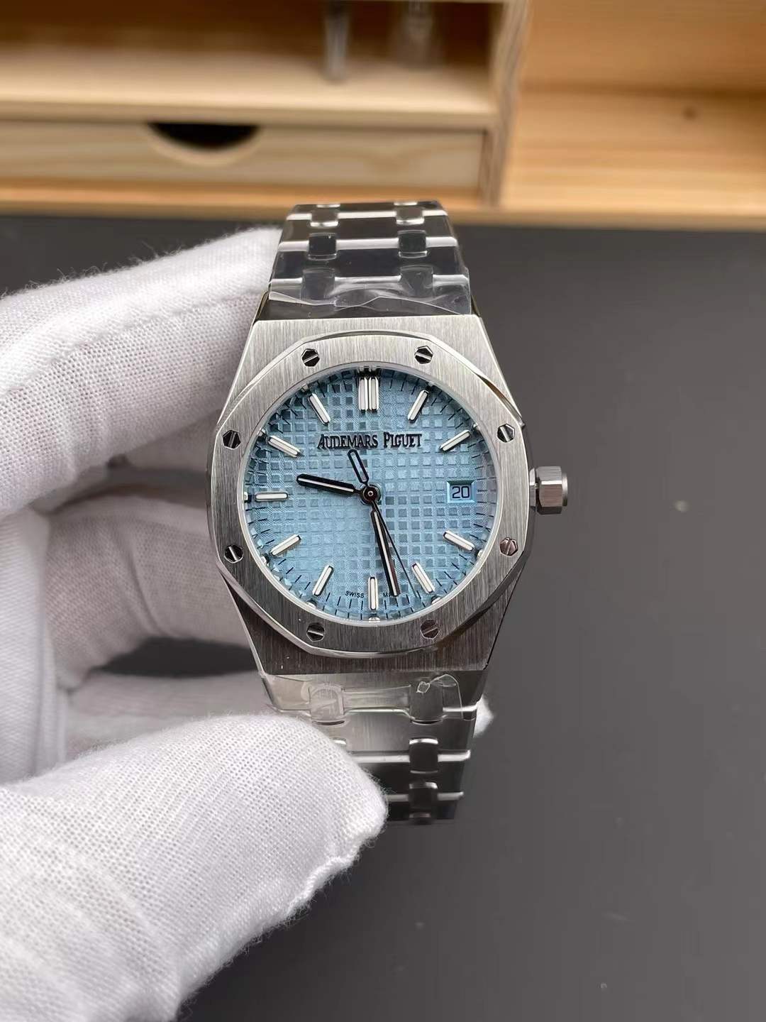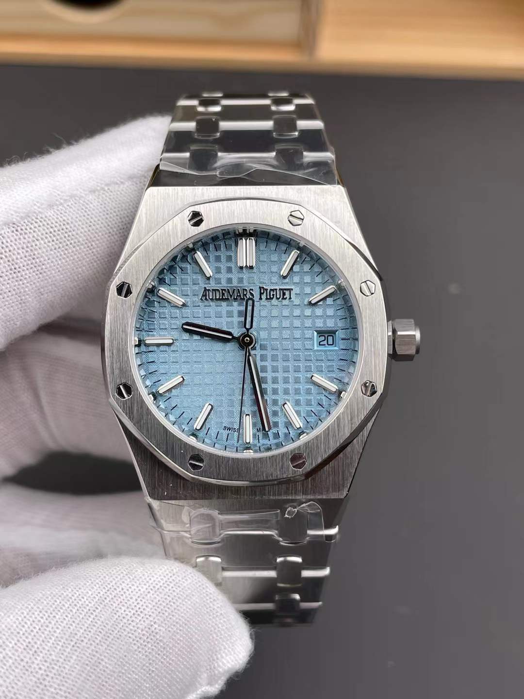 DIAL COLOR: Ice Blue Checkered Dial with Stick Markers (Superlume Applied on Needles and Markers)