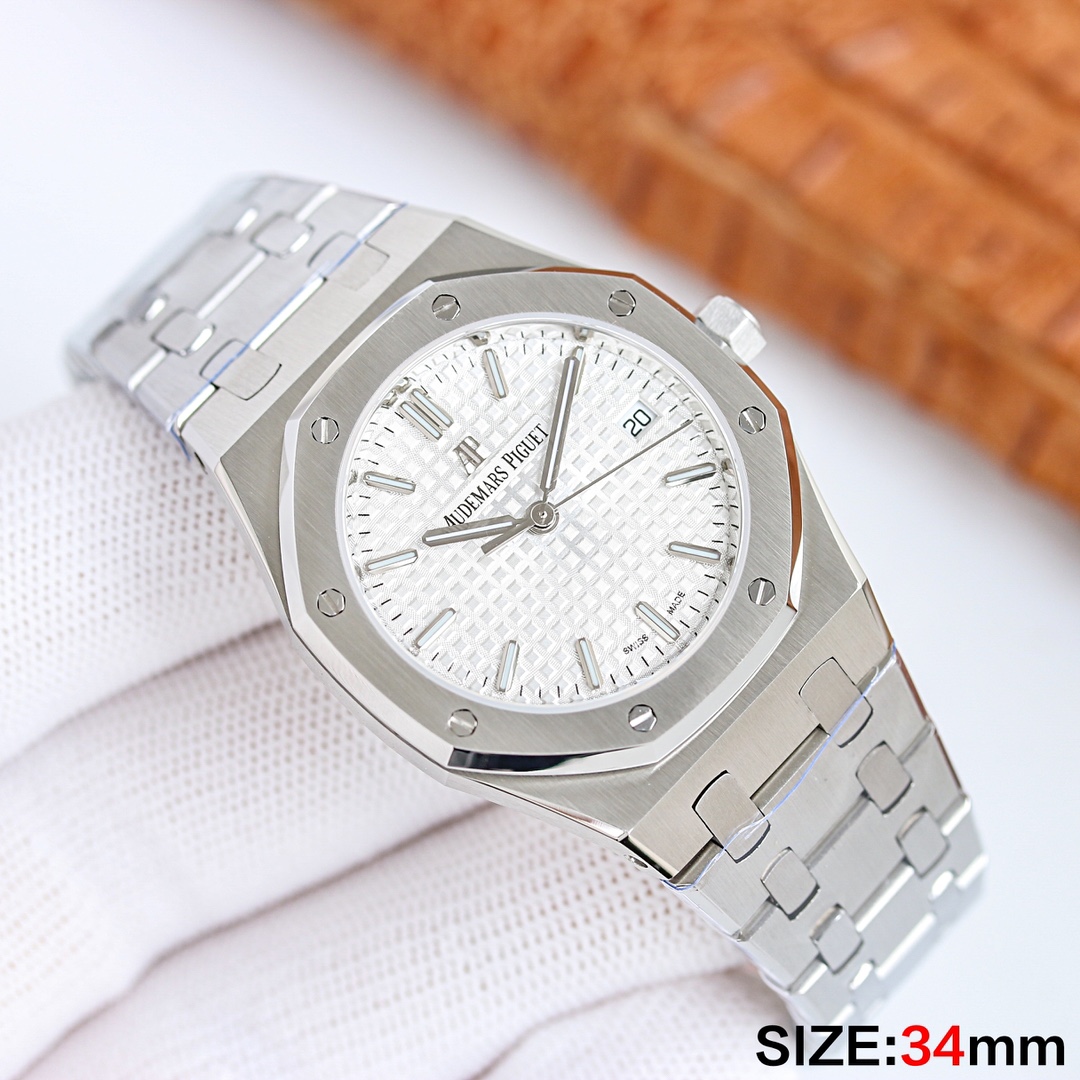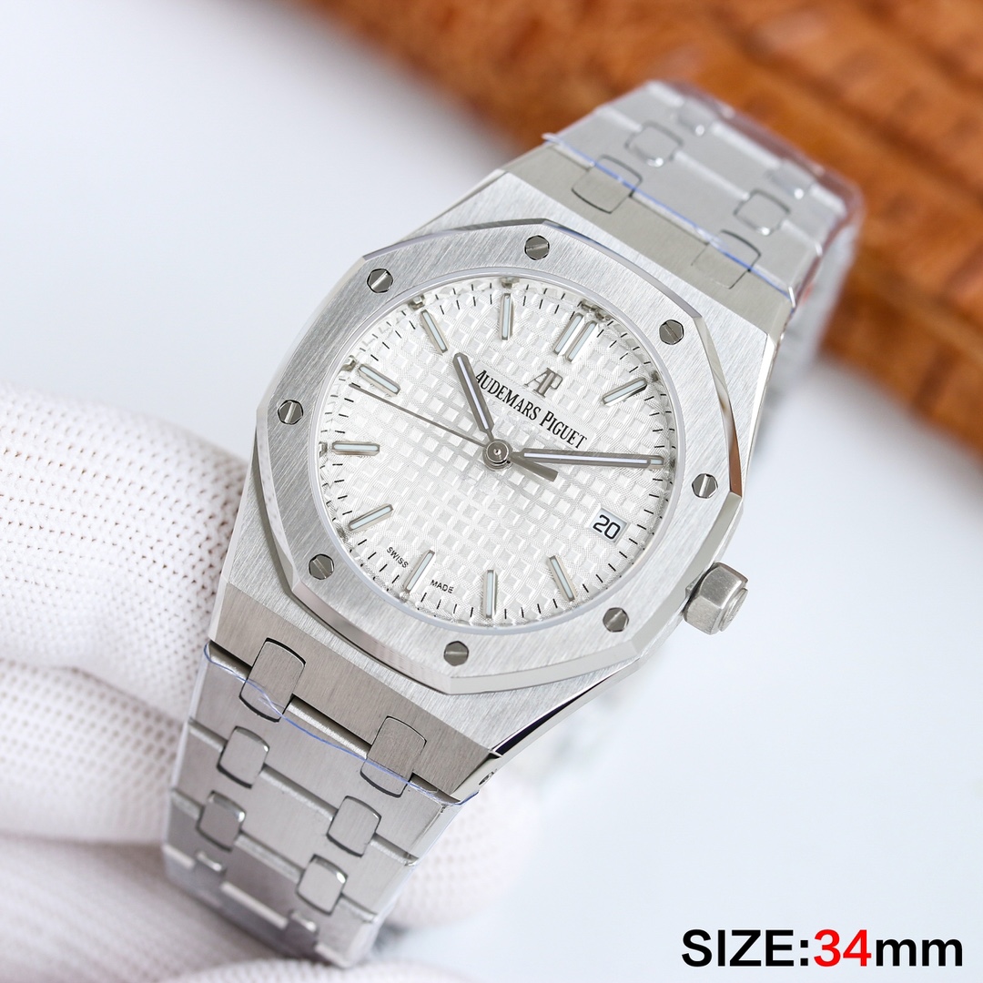 Audemars Piguet-Royal Oak Ladies 77350 34mm Stainless Steel/Steel White Dial ZF A5800 Automatic