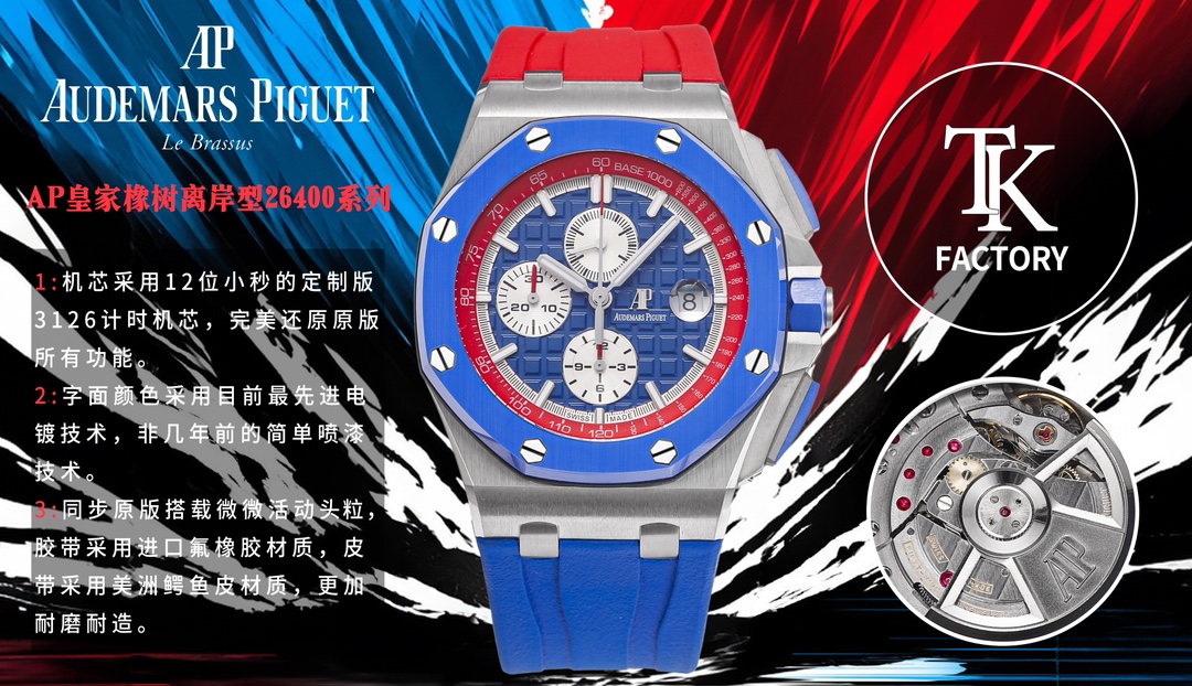 Audemars Piguet-Royal Oak Offshore 26400 Chronograph 44mm Stainless Steel/Rubber Blue Dial TKF A7750 Automatic