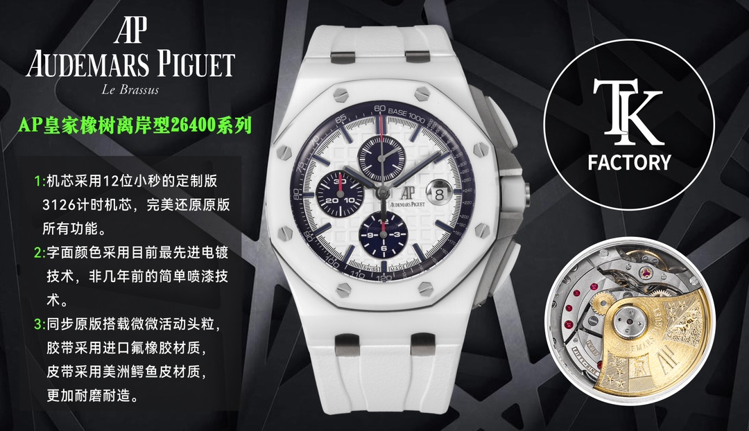 Audemars Piguet-Royal Oak Offshore 26400 Chronograph 44mm Ceramic/Rubber White Dial TKF A7750 Automatic
