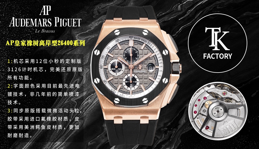 CASE MATERIAL:18K Rose Gold Plated On Solid 316L Stainless Steel