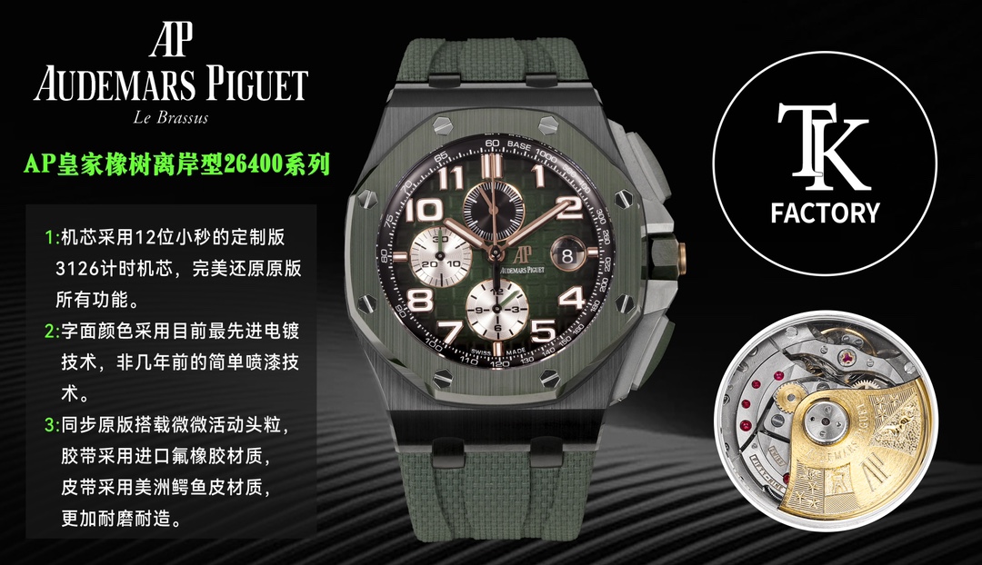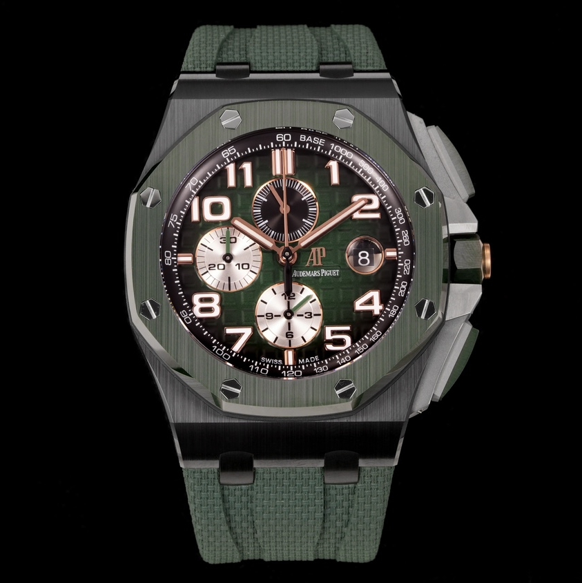Audemars Piguet-Royal Oak Offshore 26400 Chronograph 44mm DLC/Rubber Olive/Silver Dials TKF A7750 Automatic