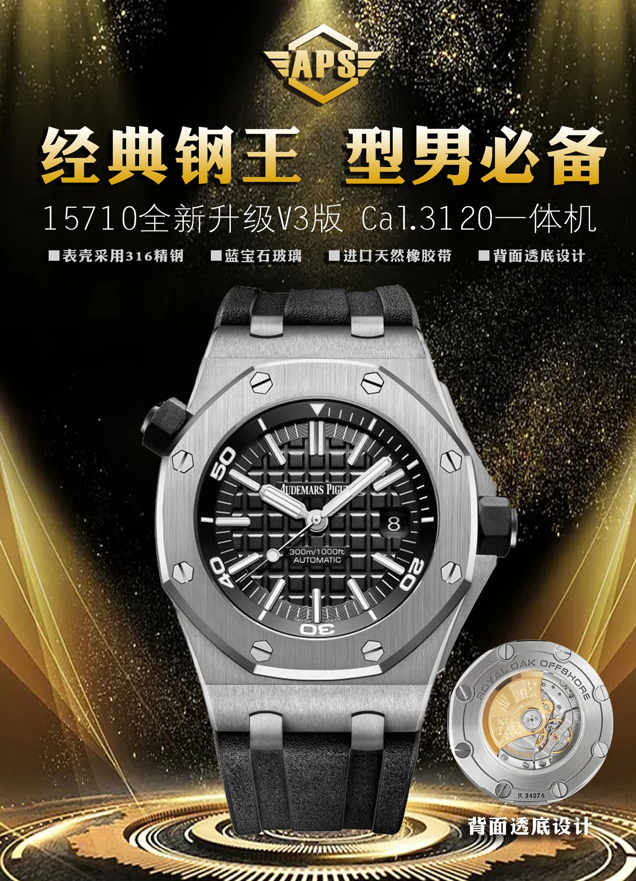MOVEMENT:Asian Super Clone 3120 Automatic Movement with platinum decorated movement plate, bridges and rotor made like Genuine Calibre AP 3120 (Improved Rotor Piece)