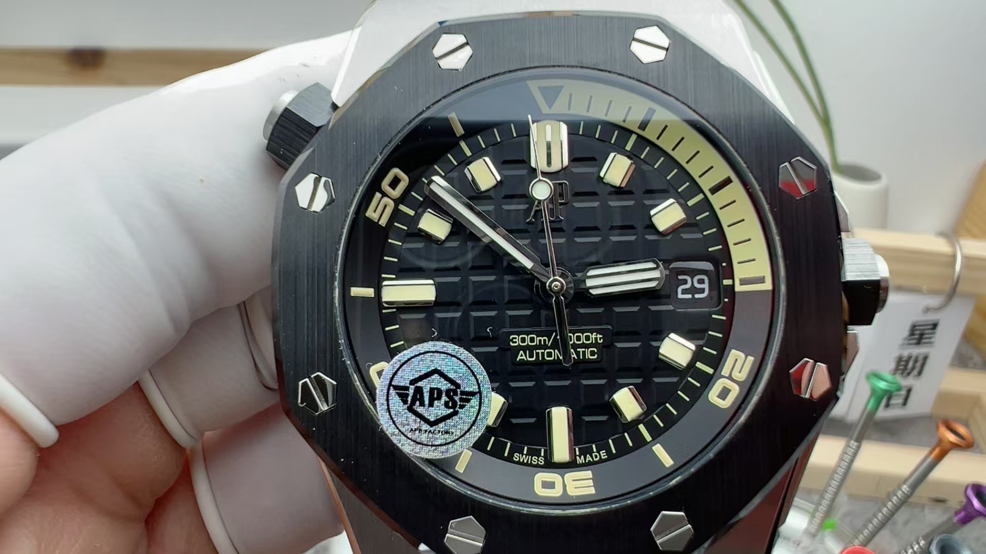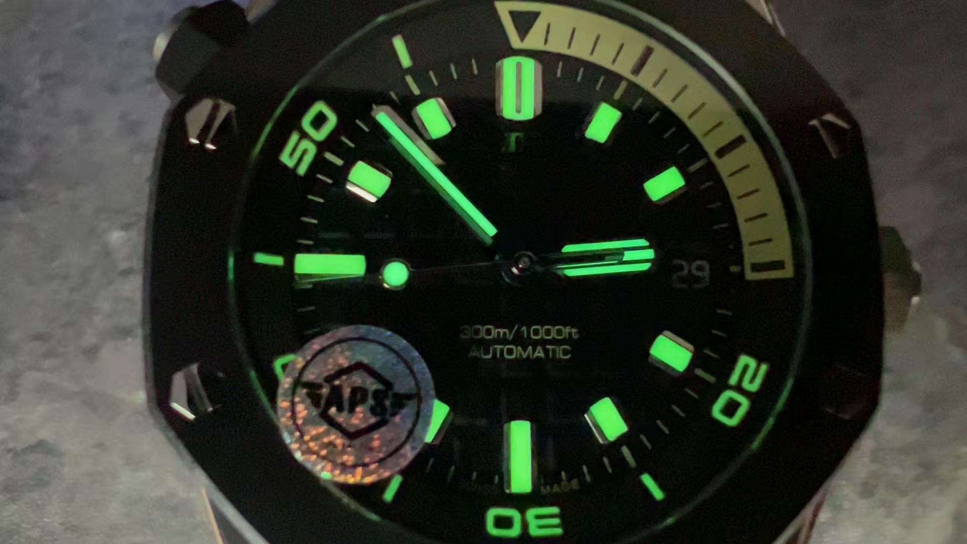 DIAL COLOR: Black Checkered Dial with Stick Markers (With SuperLume Applied)