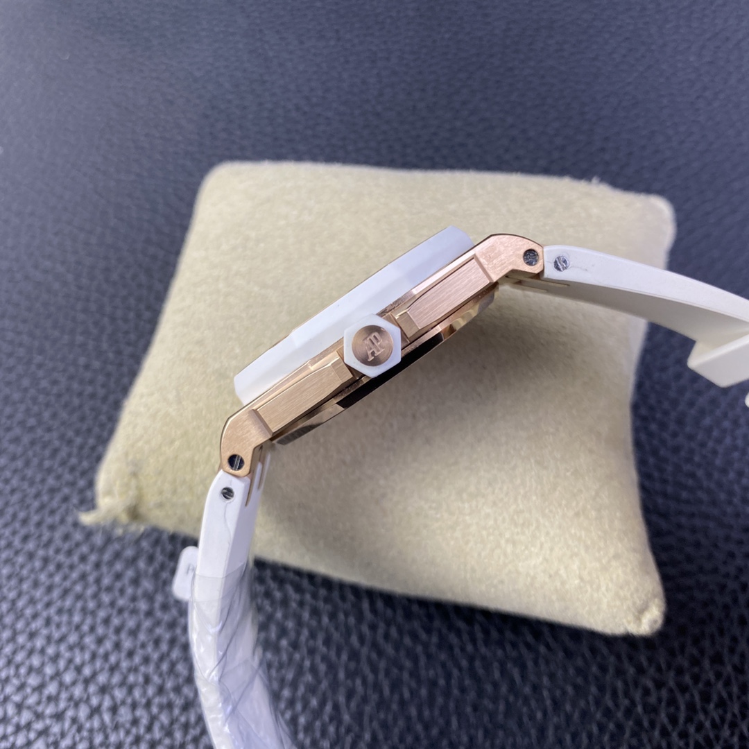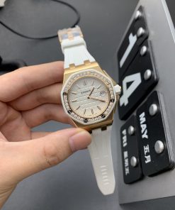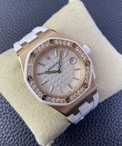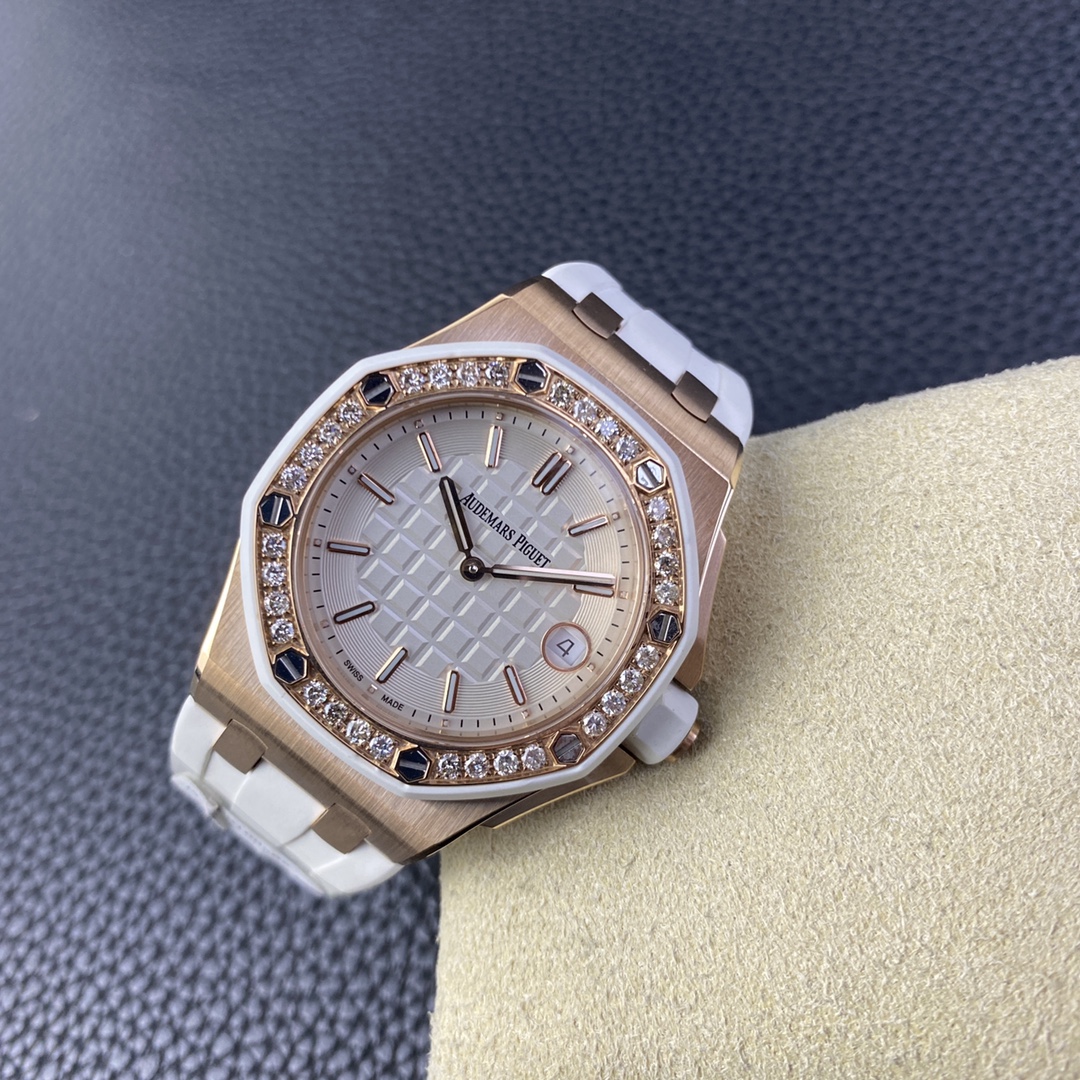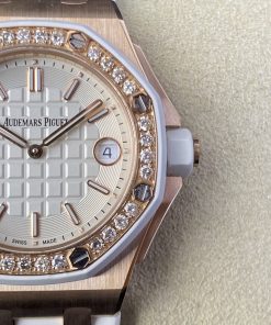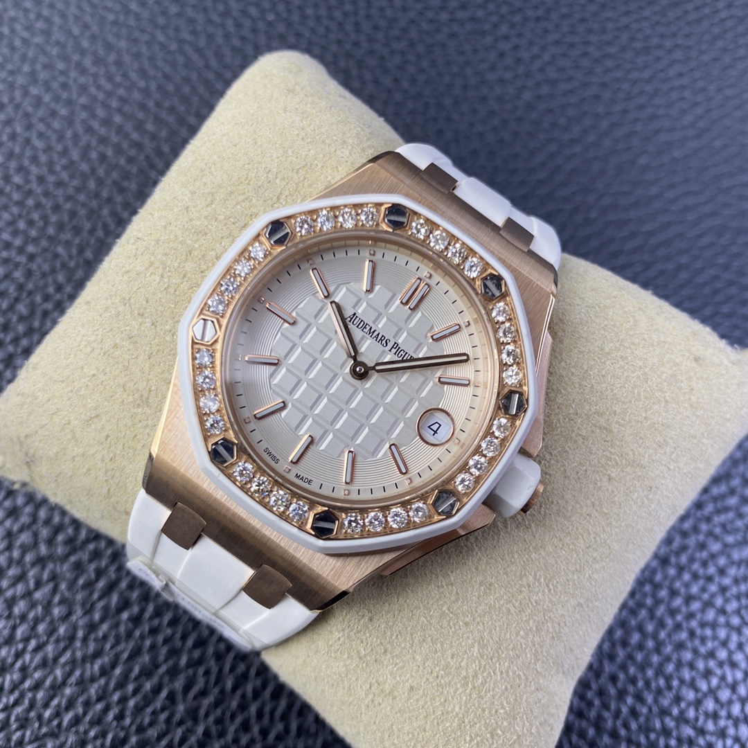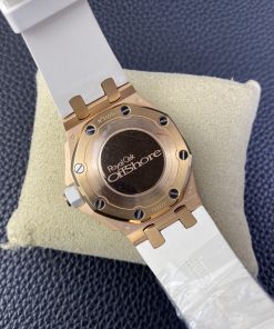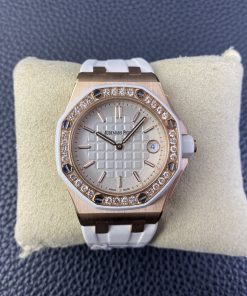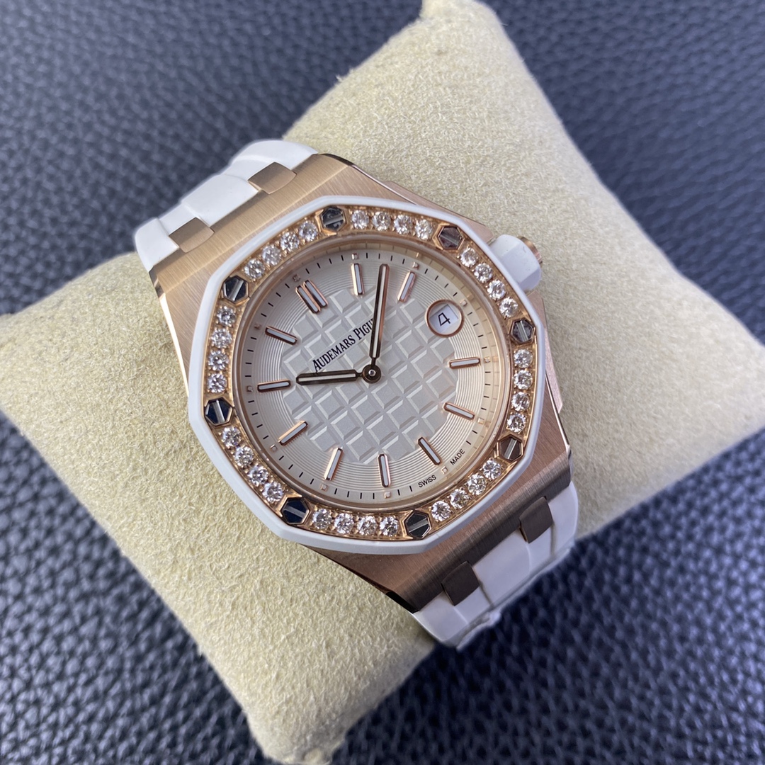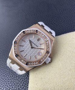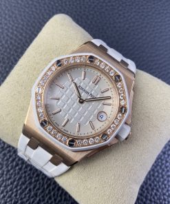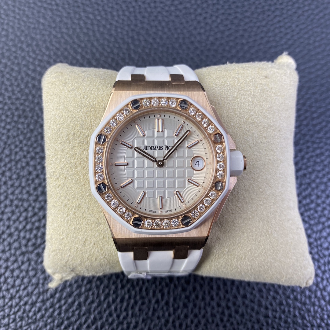 Audemars Piguet-Royal Oak Offshore Diver Ladies 67540 37mm Diamonds Rose Gold/Rubber White Swiss Quartz