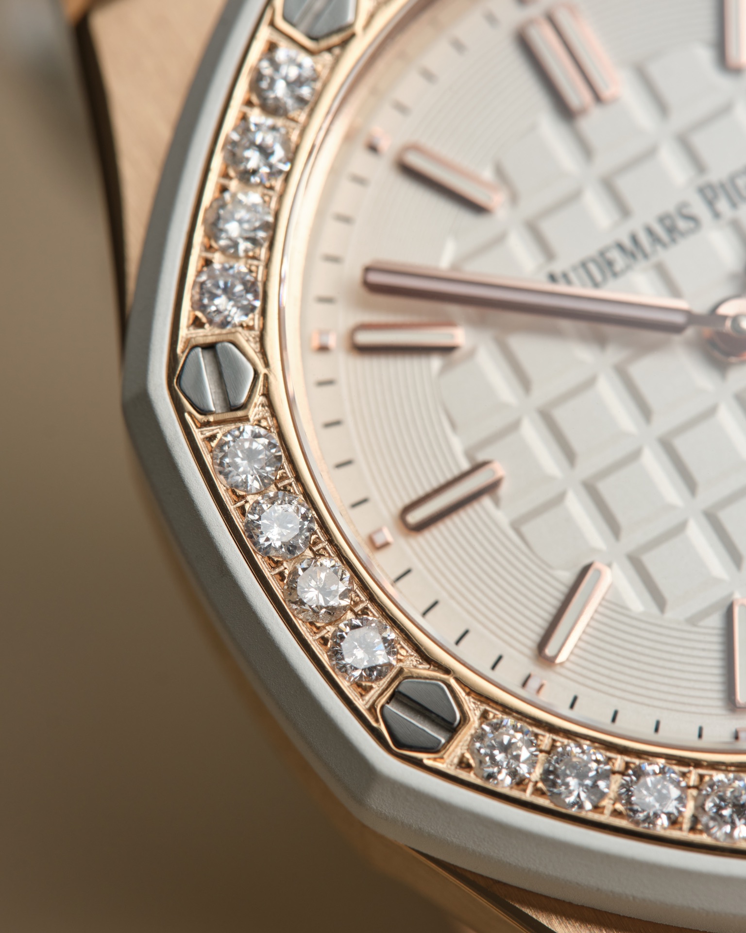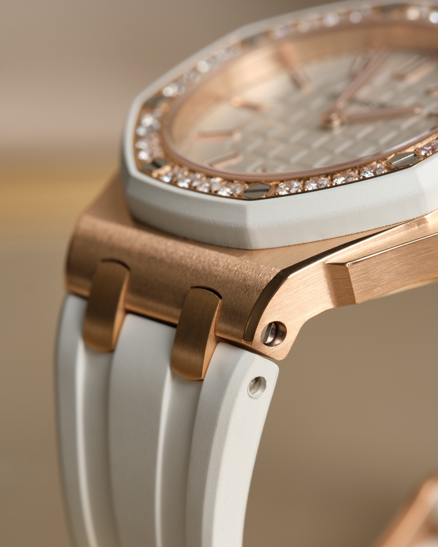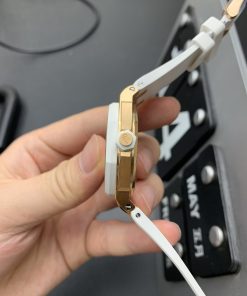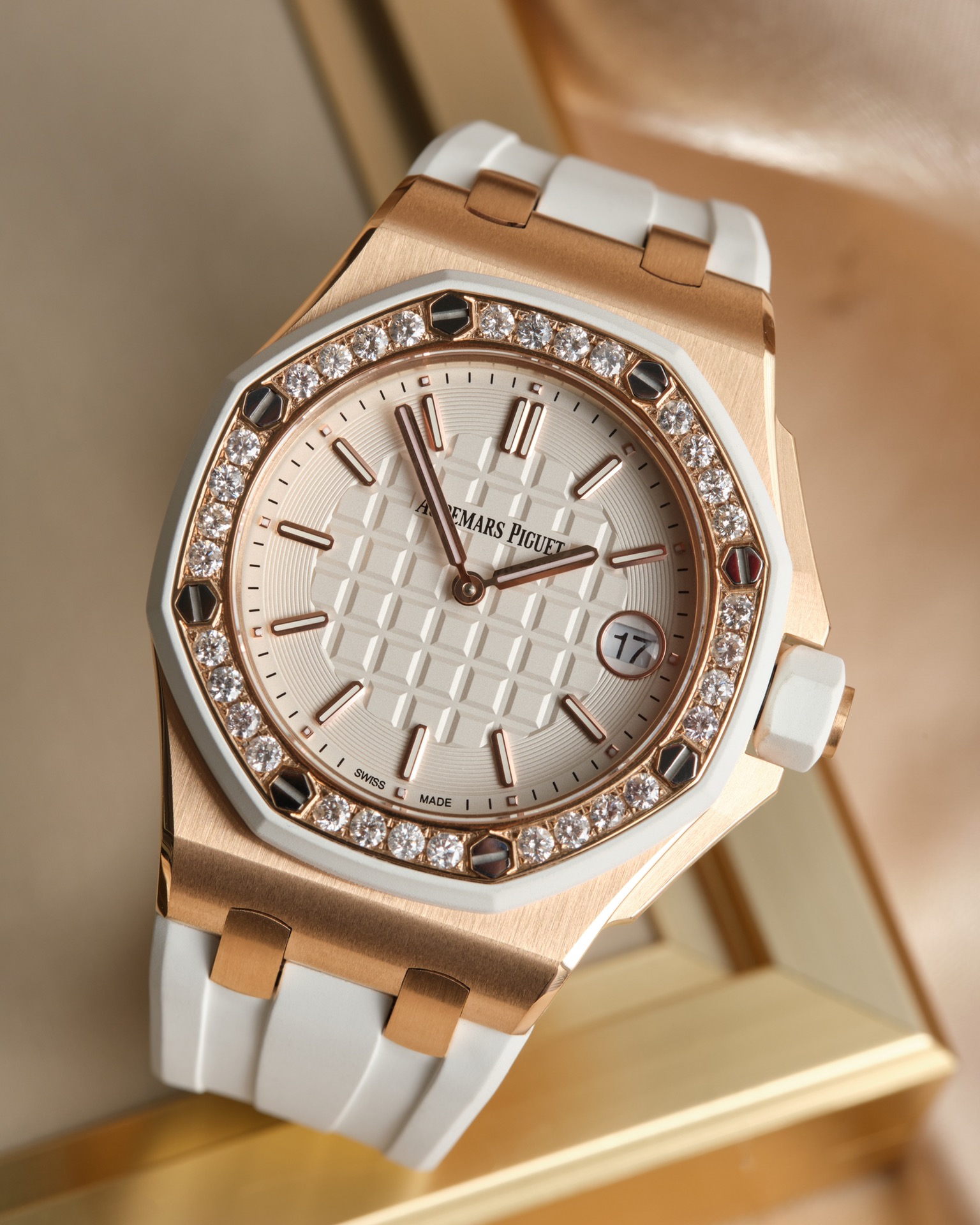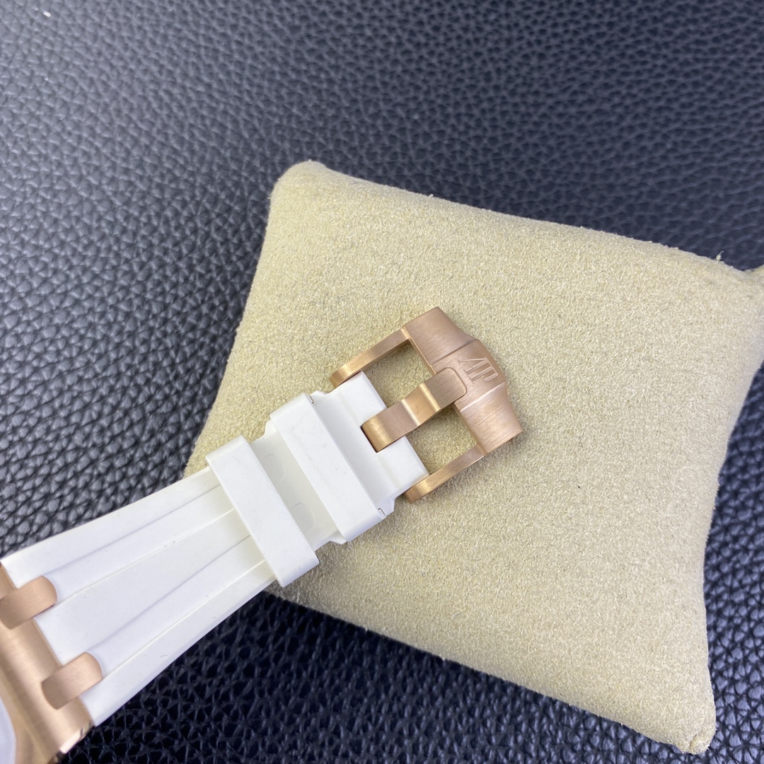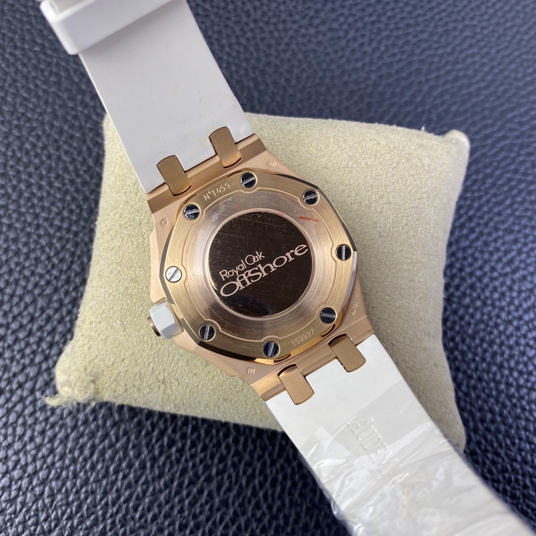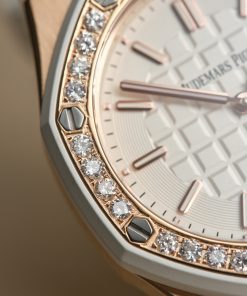 Audemars Piguet-Royal Oak Offshore Diver Ladies 67540 37mm Diamonds Rose Gold/Rubber White Swiss Quartz