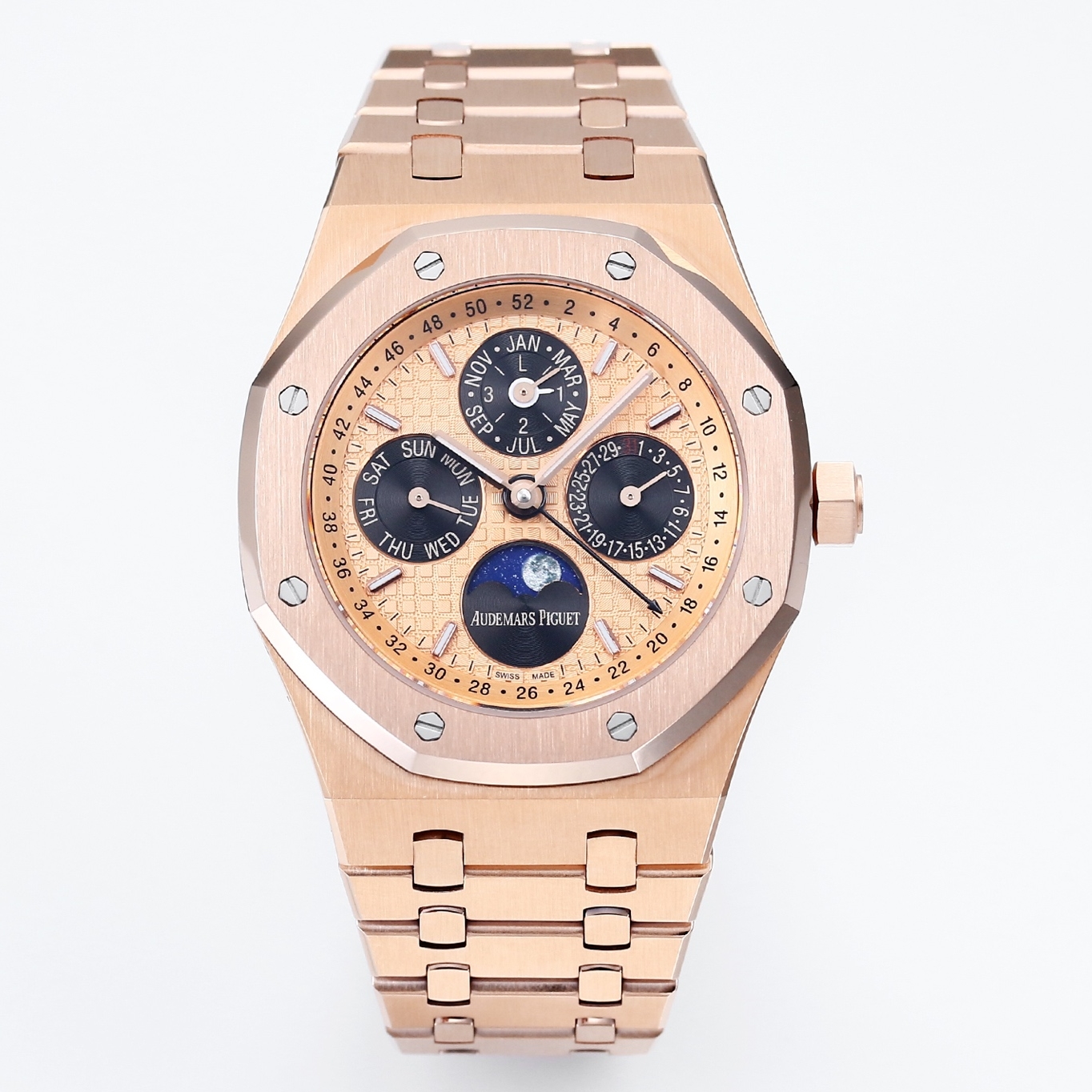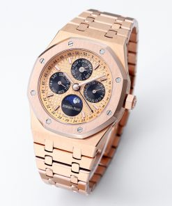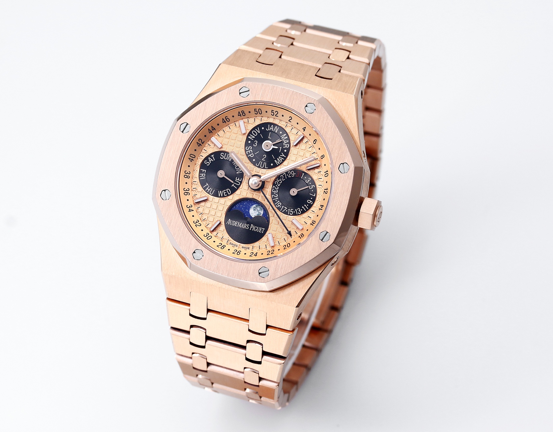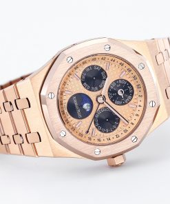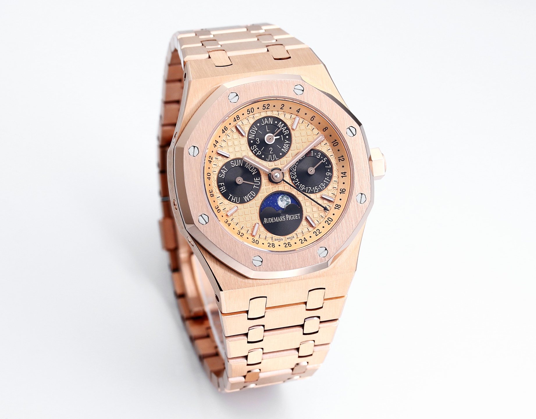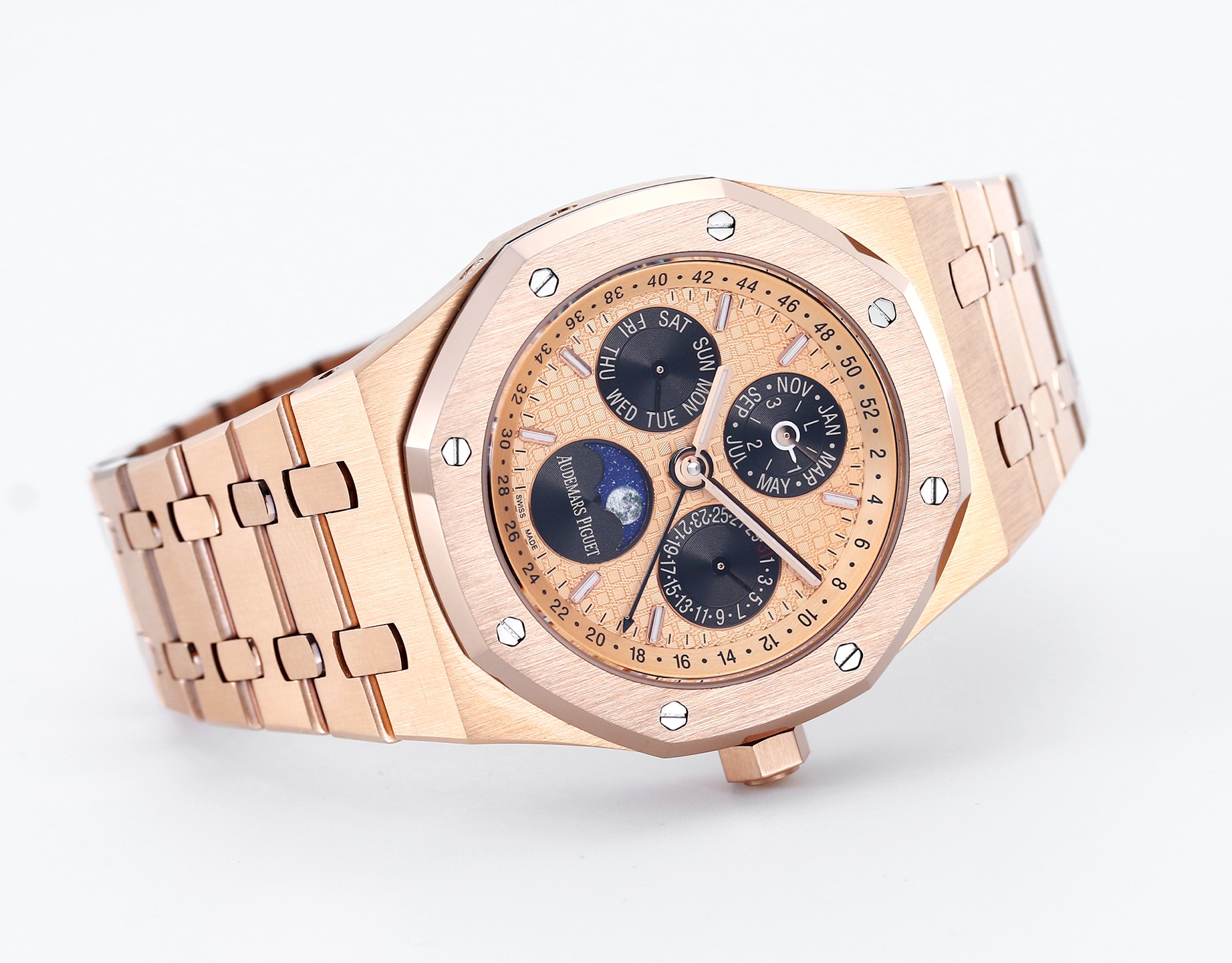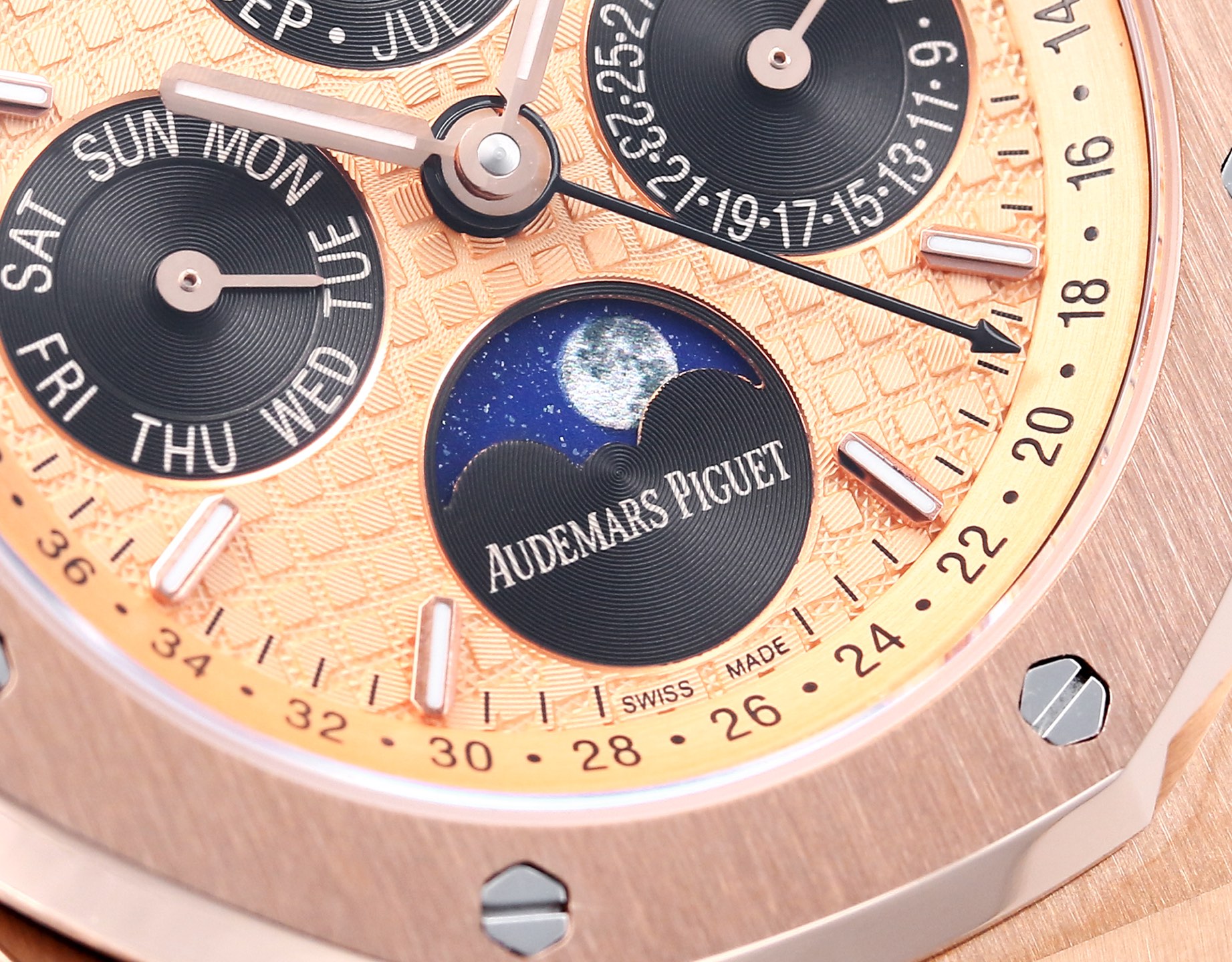 DIAL COLOR: Rose Gold checkered dial with stick markers and subdials
