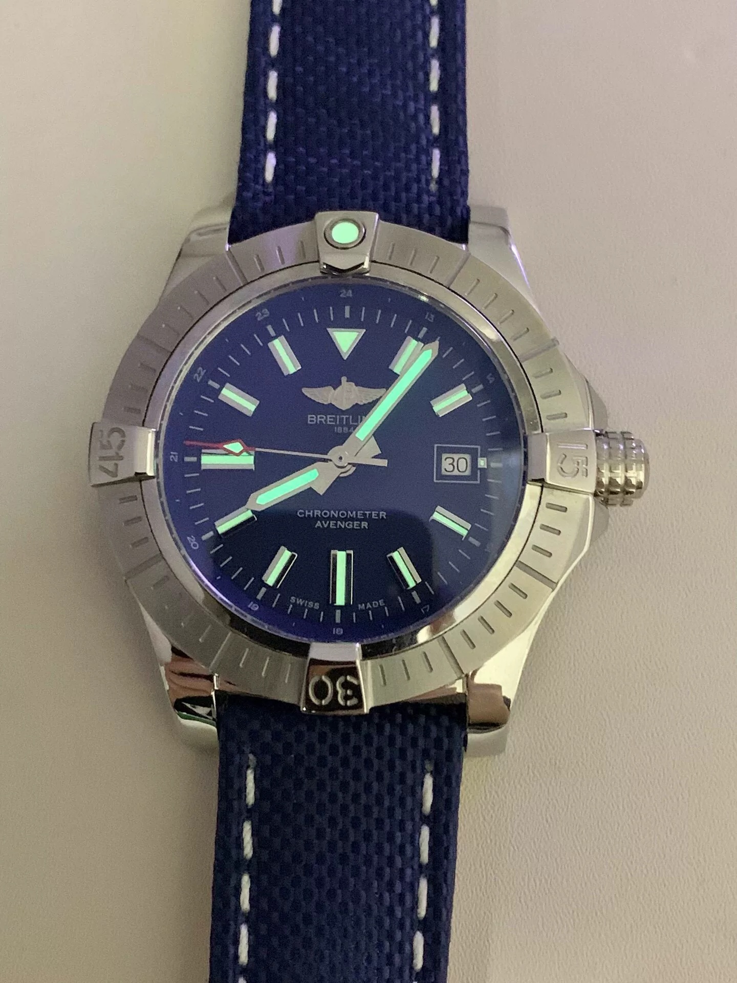 DIAL COLOR: Blue dial with stick markers(Blue Superlume Applied on Hands and Markers)