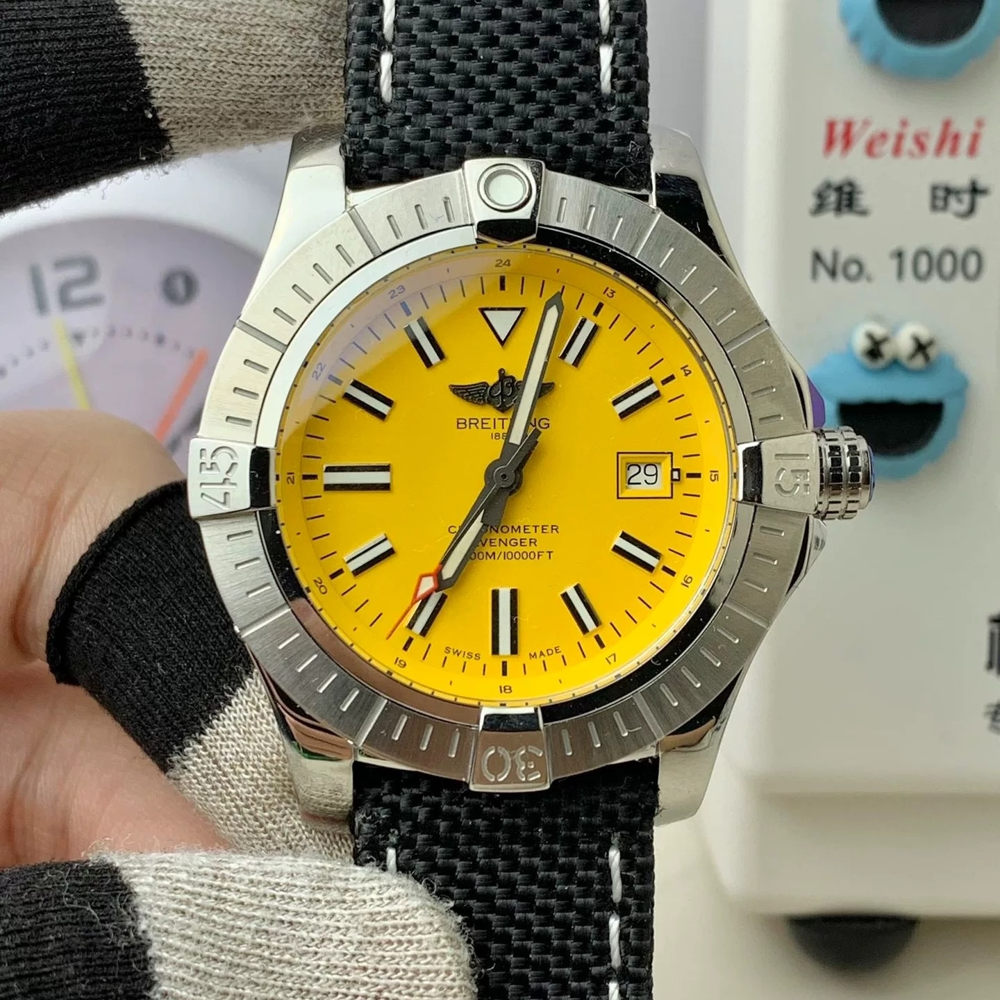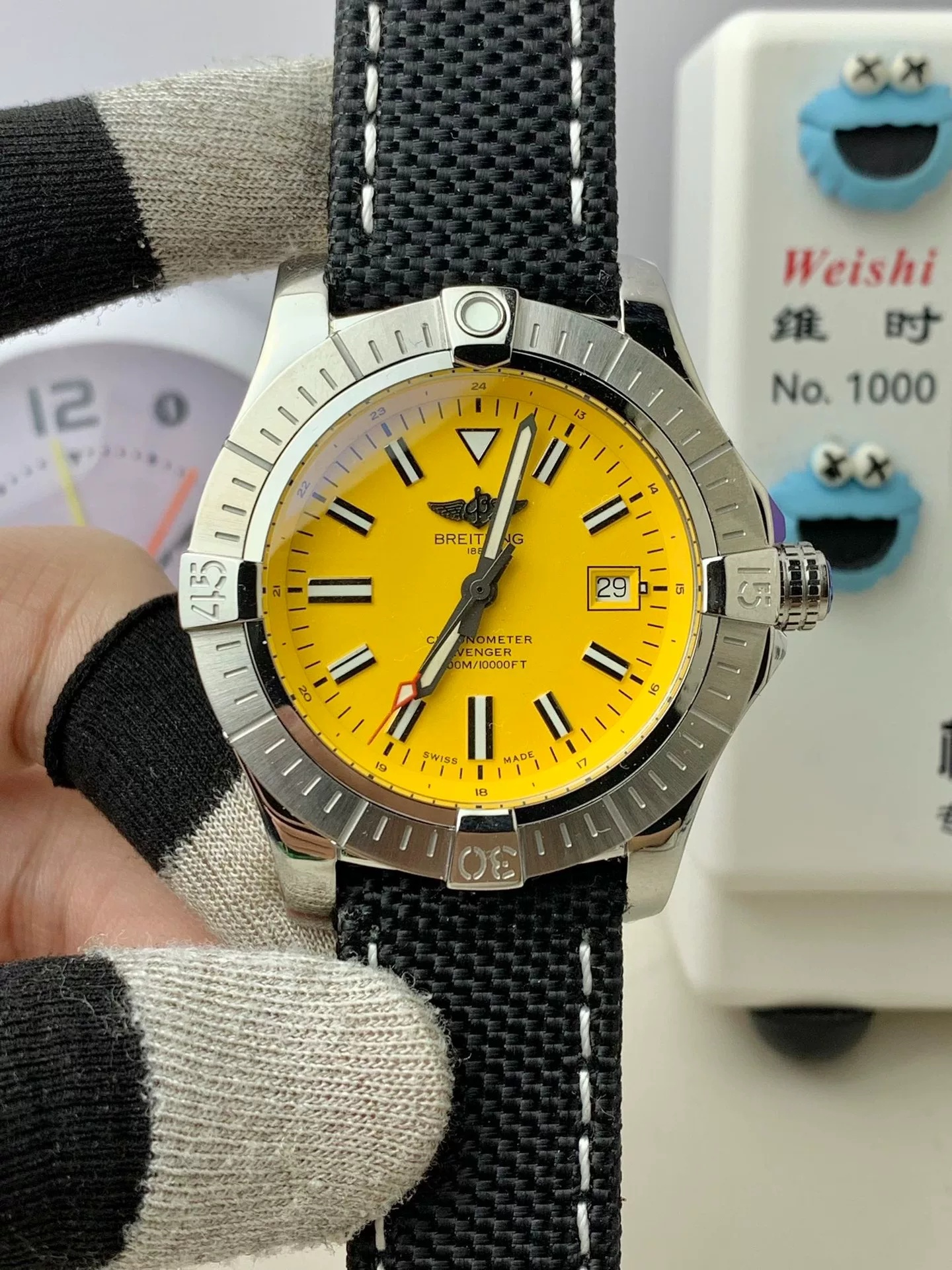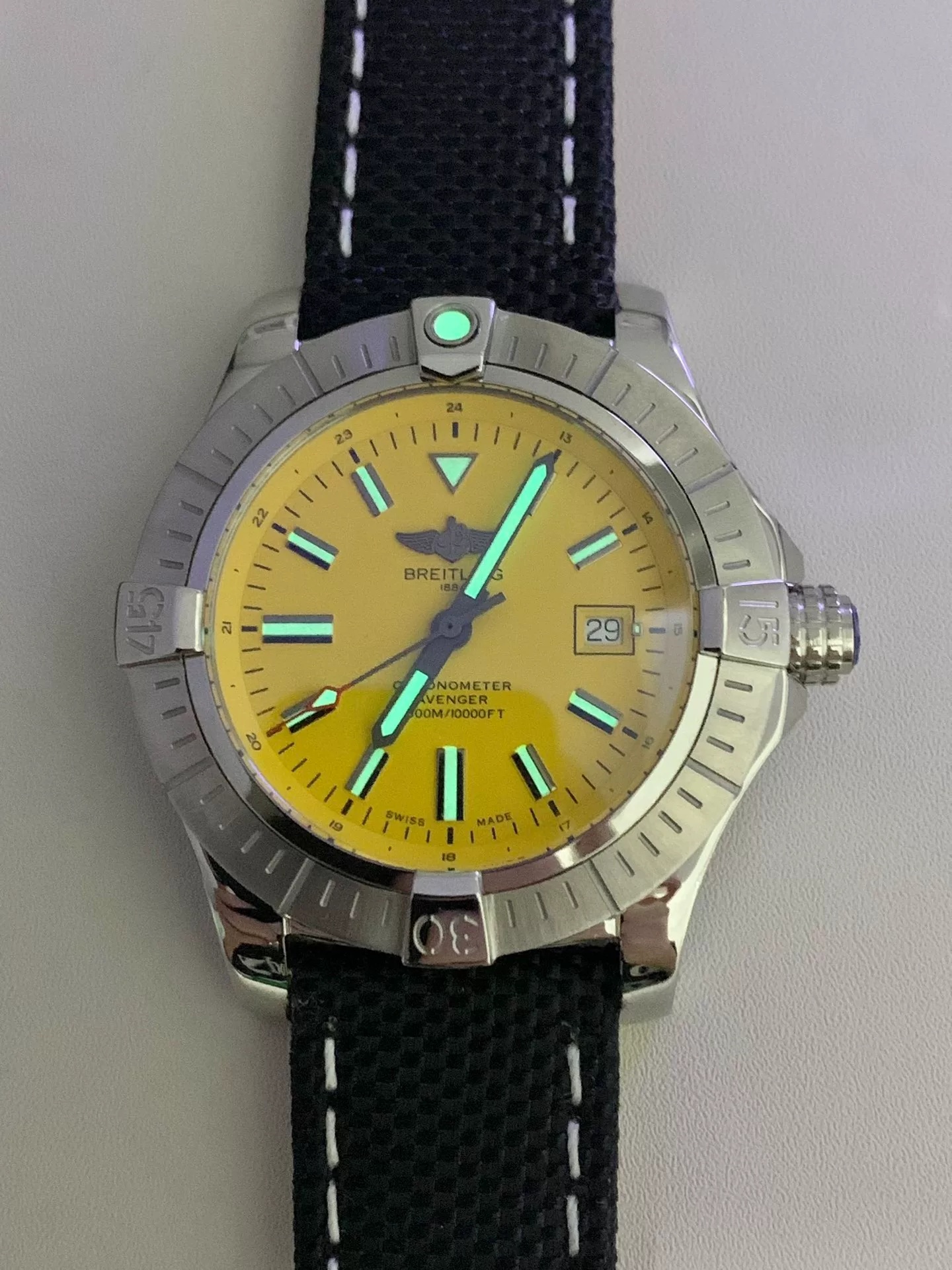 DIAL COLOR: Yellow dial with stick markers(Blue Superlume Applied on Hands and Markers)