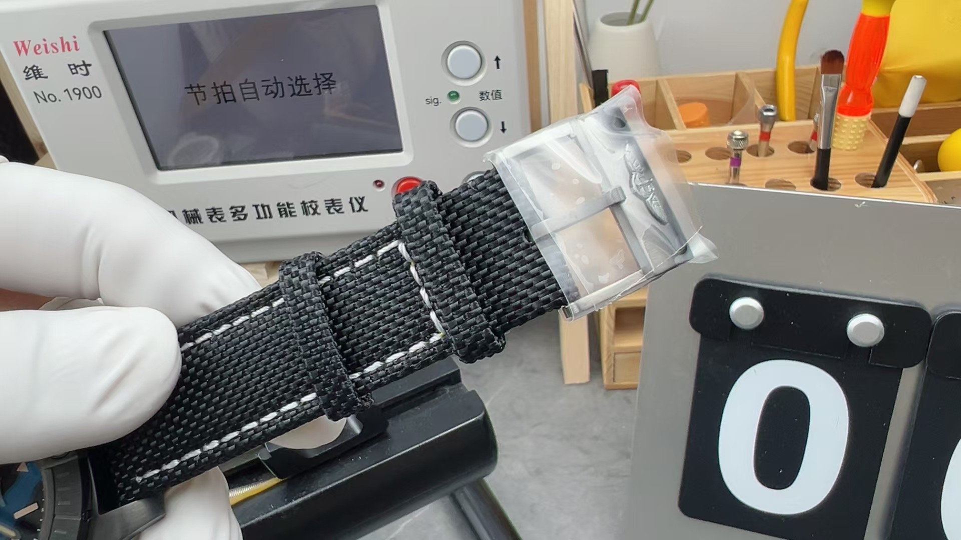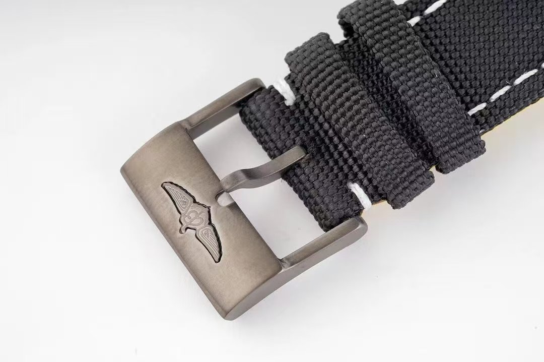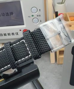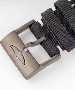 BRACELET: Black Nylon Clad Leather strap with Tang Buckle