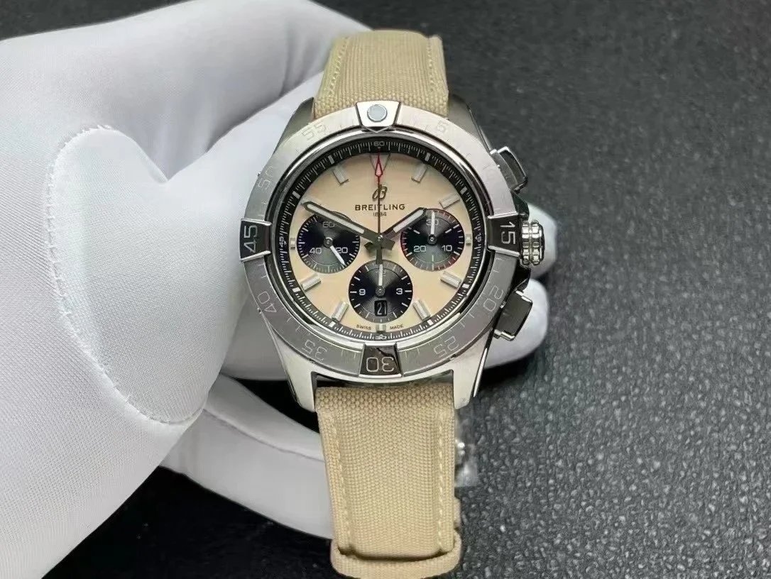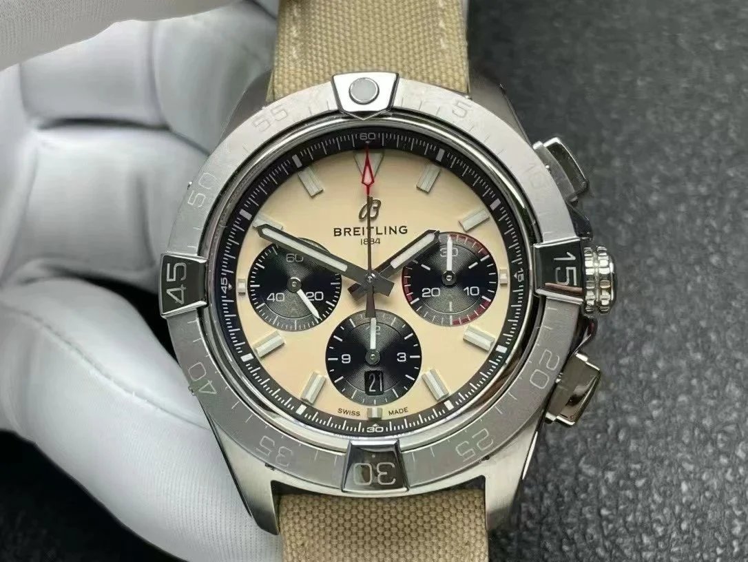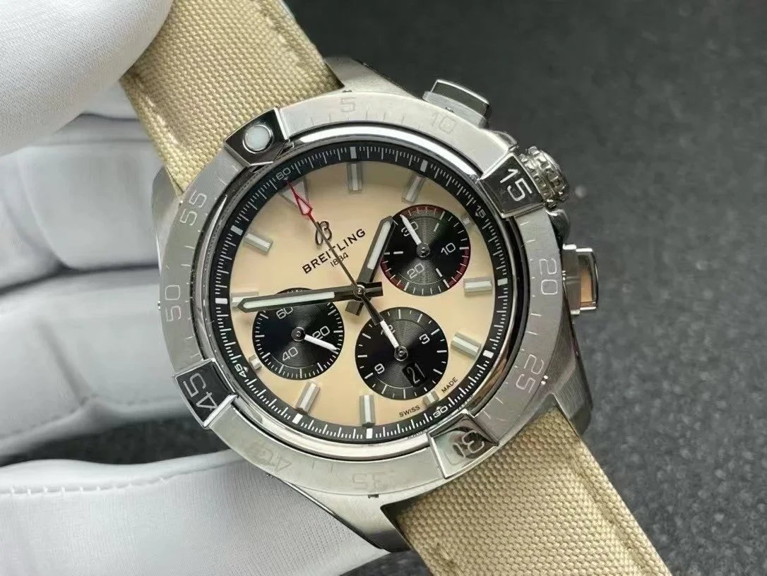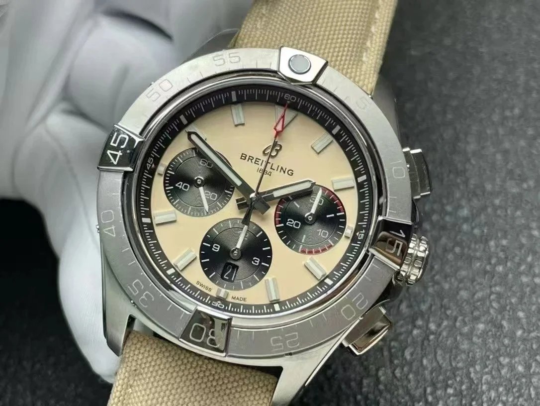 Breitling-Avenger B01 Chronograph 44mm Stainless Steel/Nylon Beige Dial Stick Markers BLSF Cal.01 Automatic