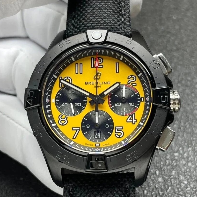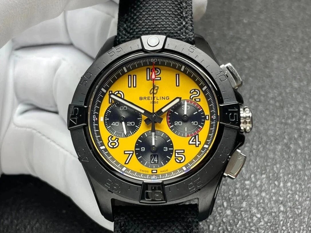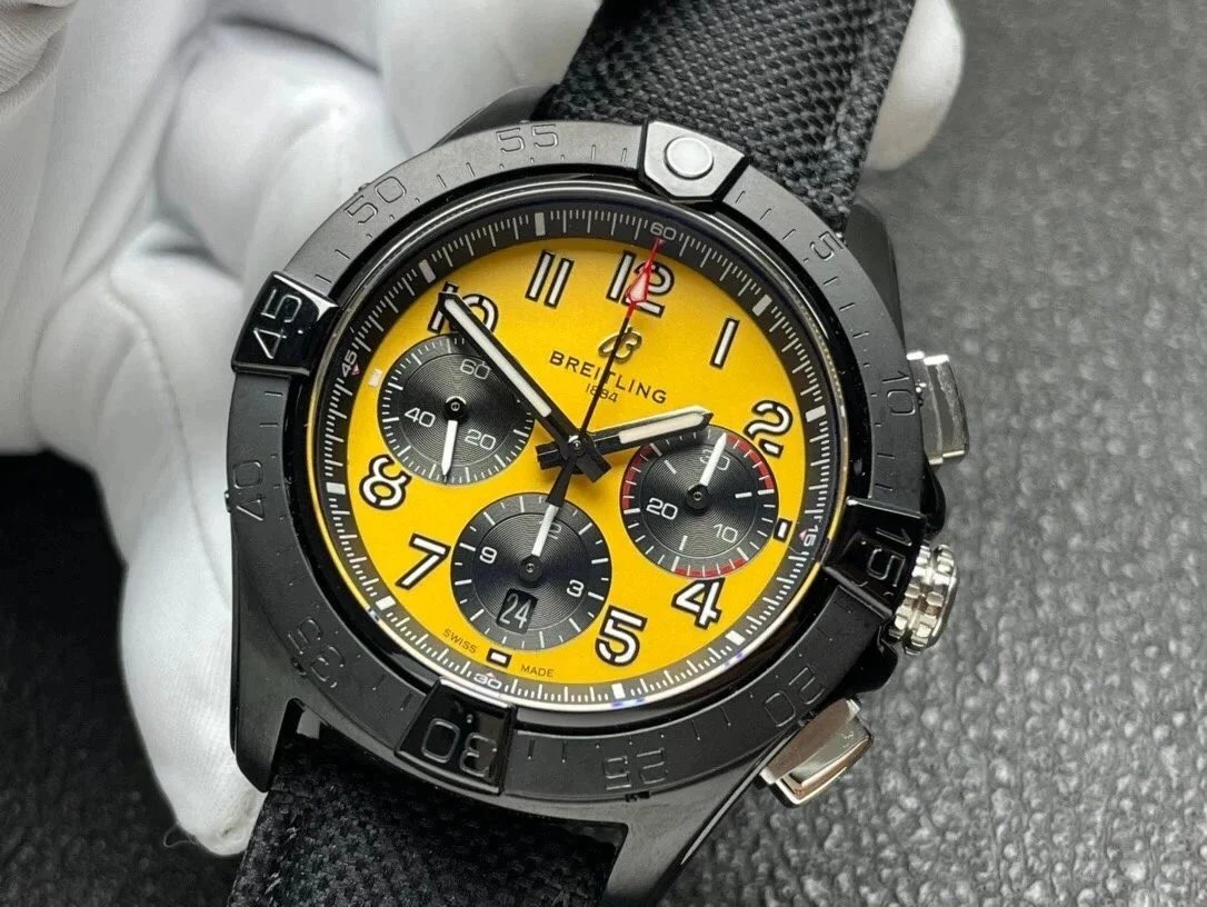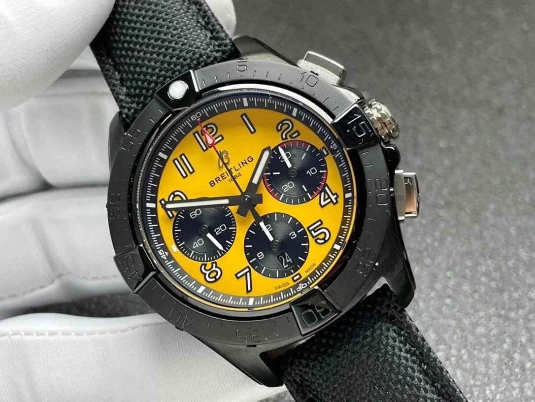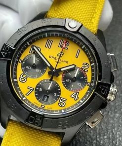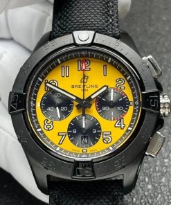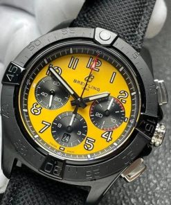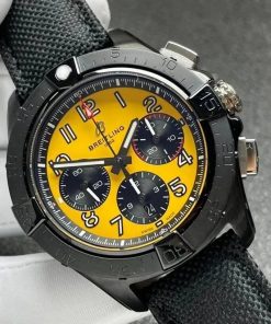 Breitling-Avenger B01 Night Mission Chronograph 44mm DLC/Nylon Yellow Dial Numeral Markers BLSF Cal.01 Automatic
