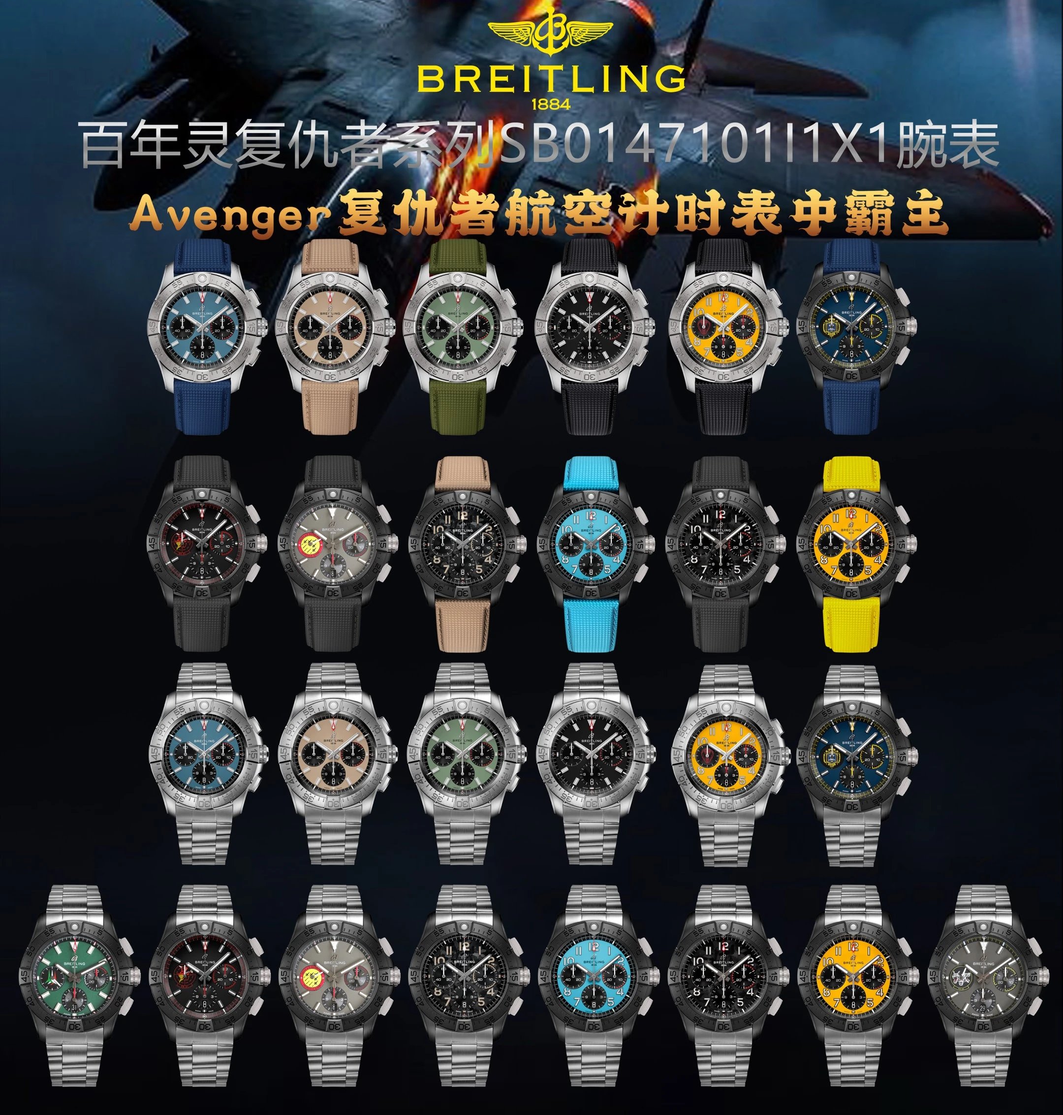 Breitling-Avenger B01 Night Mission Swiss Air Force Team Chronograph 44mm DLC/Steel Grey Dial Stick Markers BLSF Cal.01 Automatic