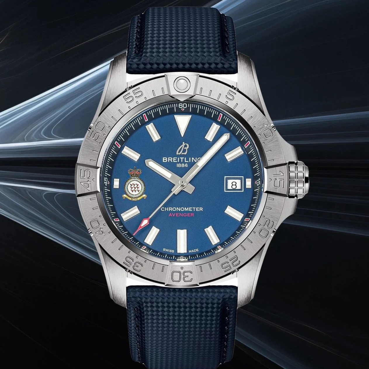 Breitling-Avenger Red Arrows Limited Edition 42mm Stainless Steel/Nylon Blue Dial Stick Markers BLSF A2824 Automatic
