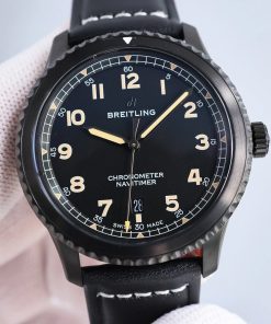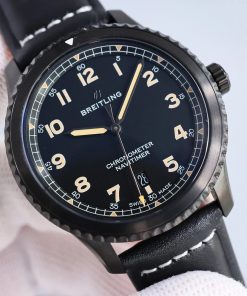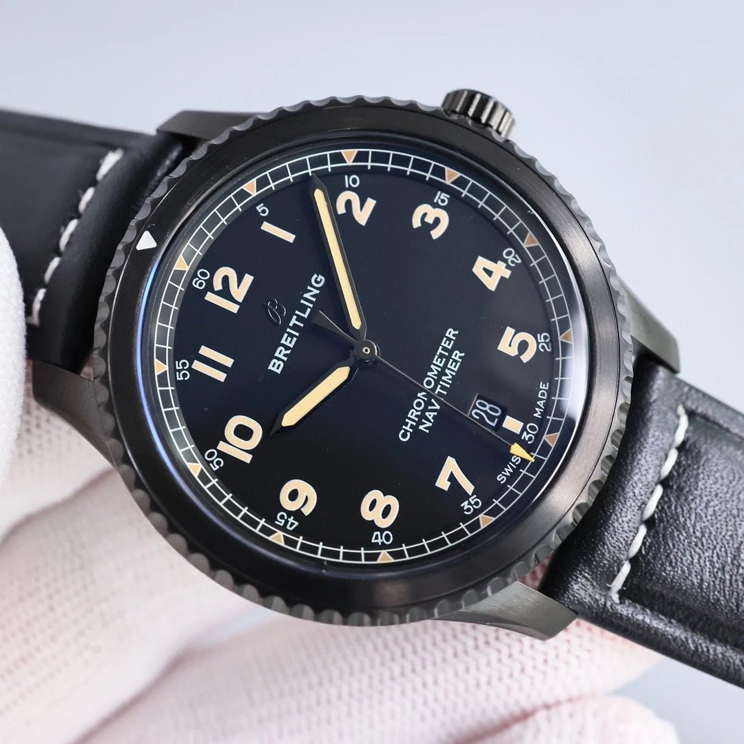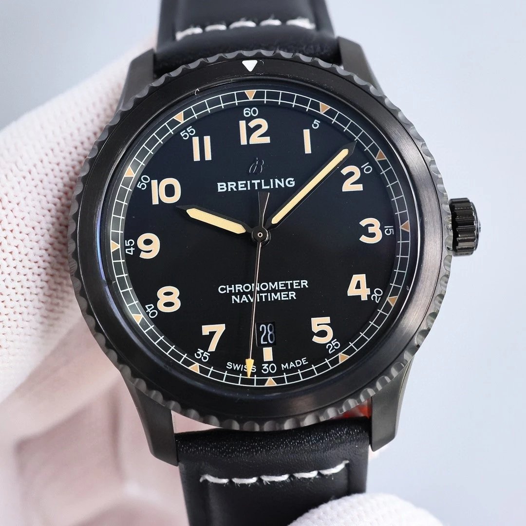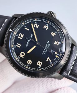 Breitling-Aviator 8 41mm DLC/Leather Black Dial Numeral Markers BLSF A2824 Automatic