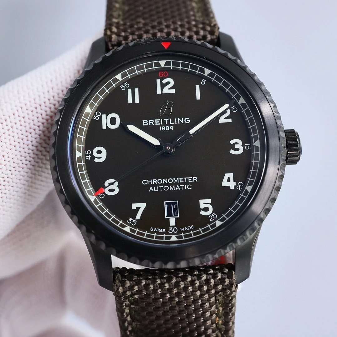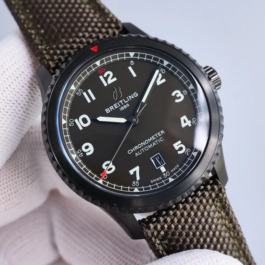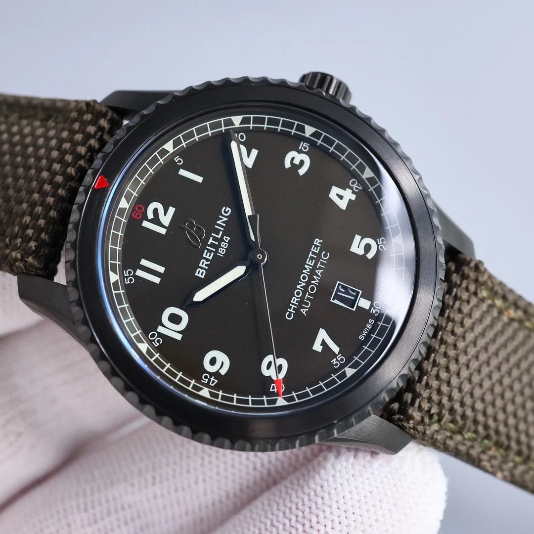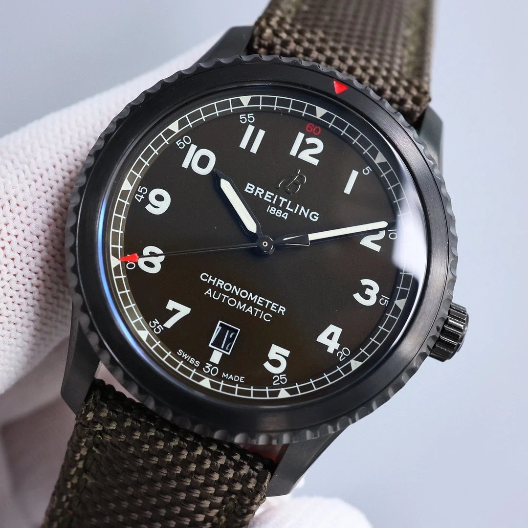 Breitling-Aviator 8 41mm DLC/Nylon Black Dial Numeral Markers BLSF A2824 Automatic