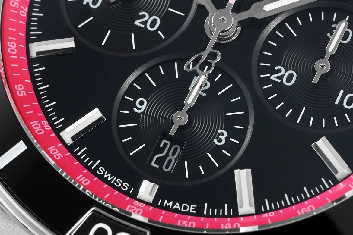DIAL COLOR: Black Dial with Black Subdials & Stick Markers(Blue Superlume Applied on Hands and Markers)