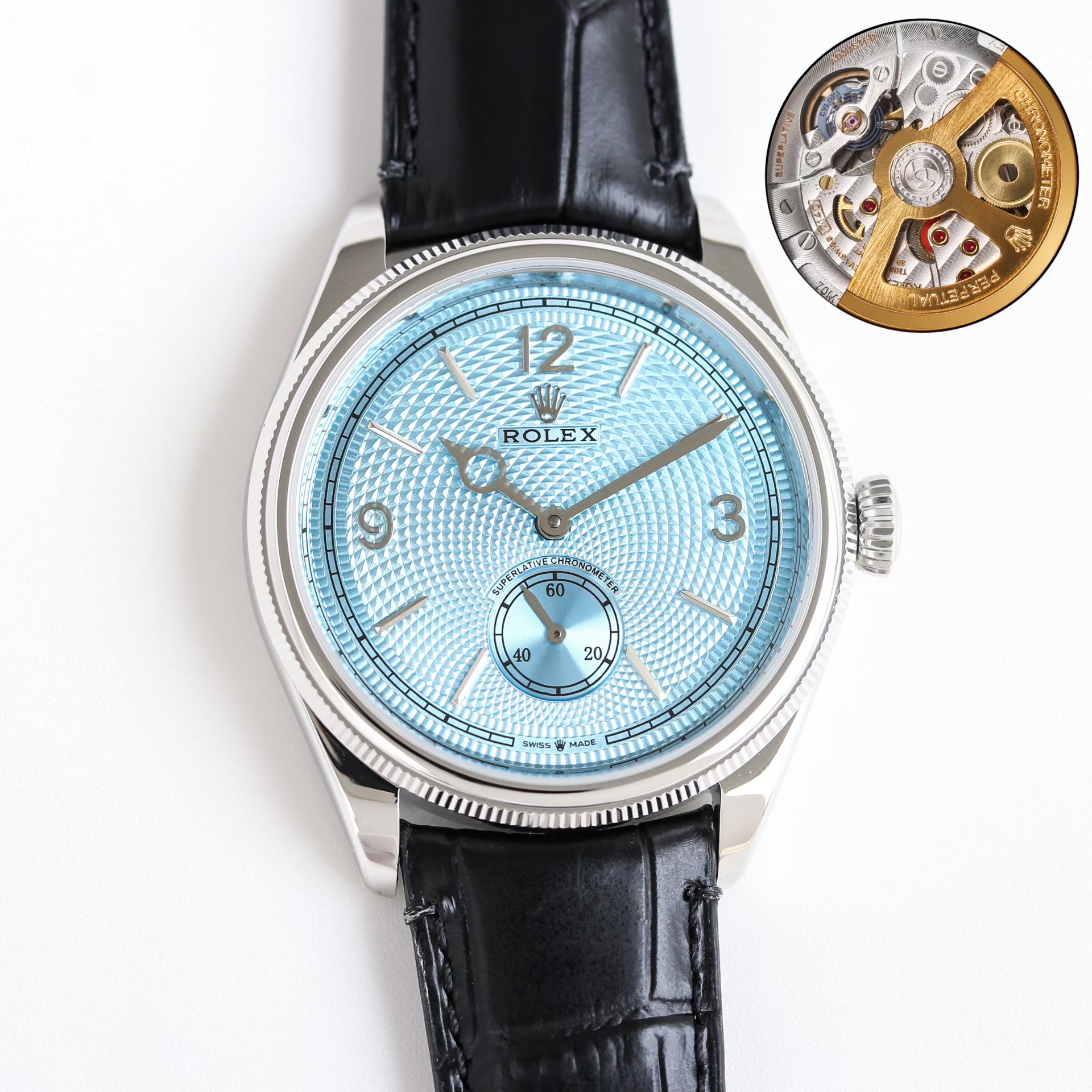 Rolex-1908 Perpetual 39mm Ultra thin Stainless Steel/Steel Ice Blue Dial R+F Cal.7140 Automatic