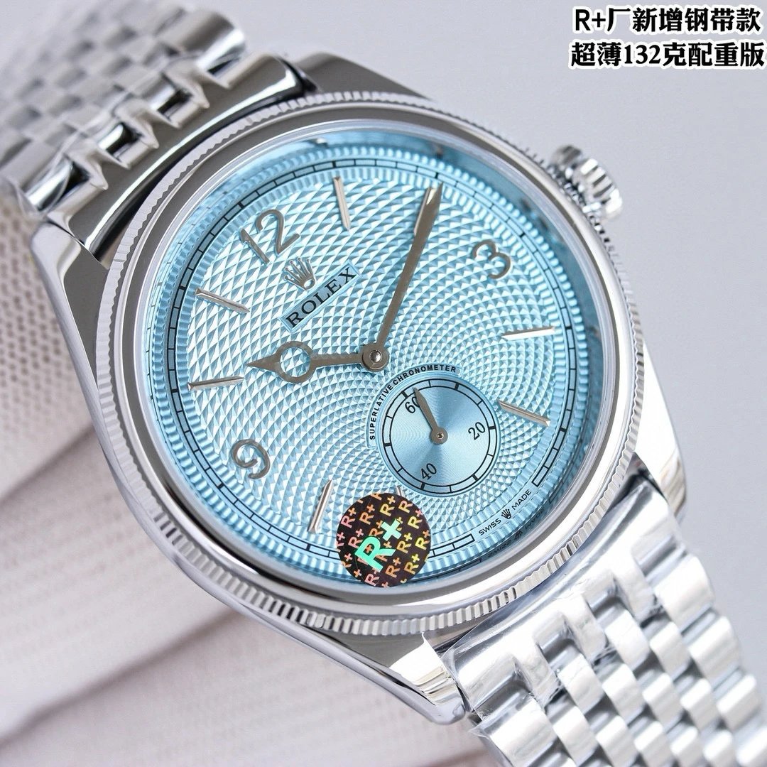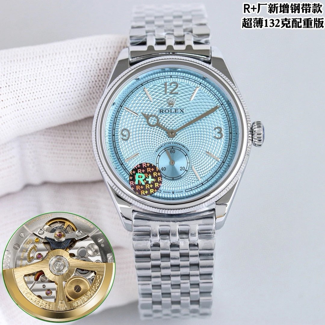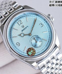 Rolex-1908 Perpetual 39mm Stainless Steel/Leather Ice Blue Dial R+F Cal.7140 Automatic