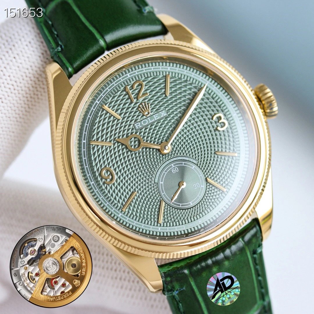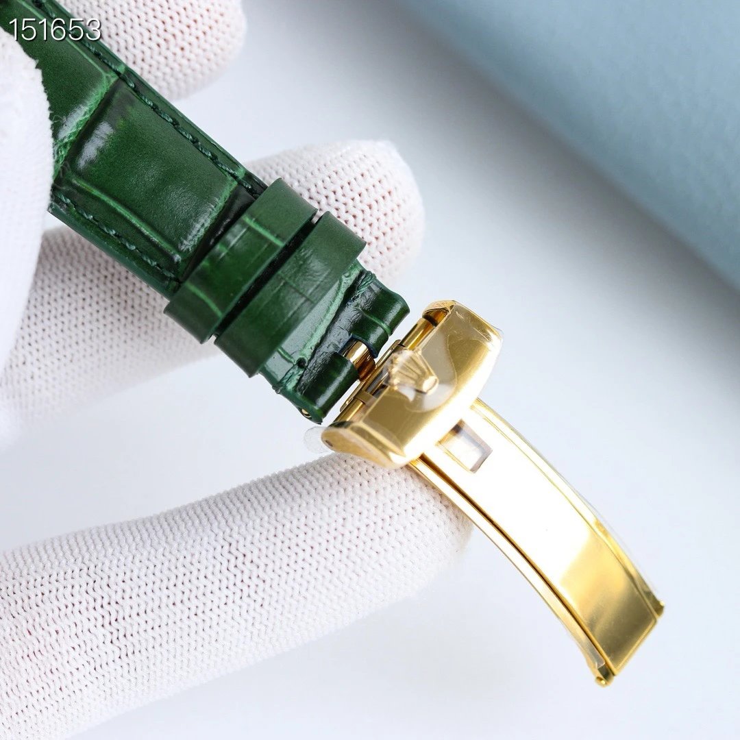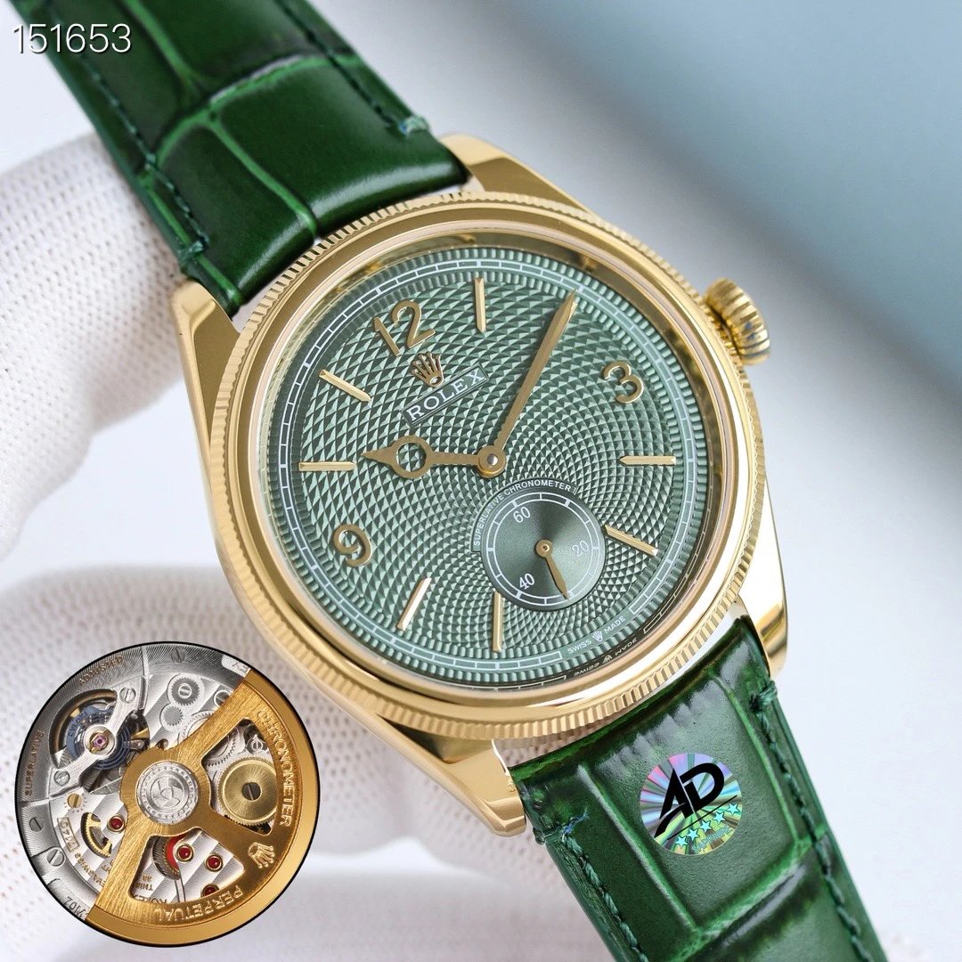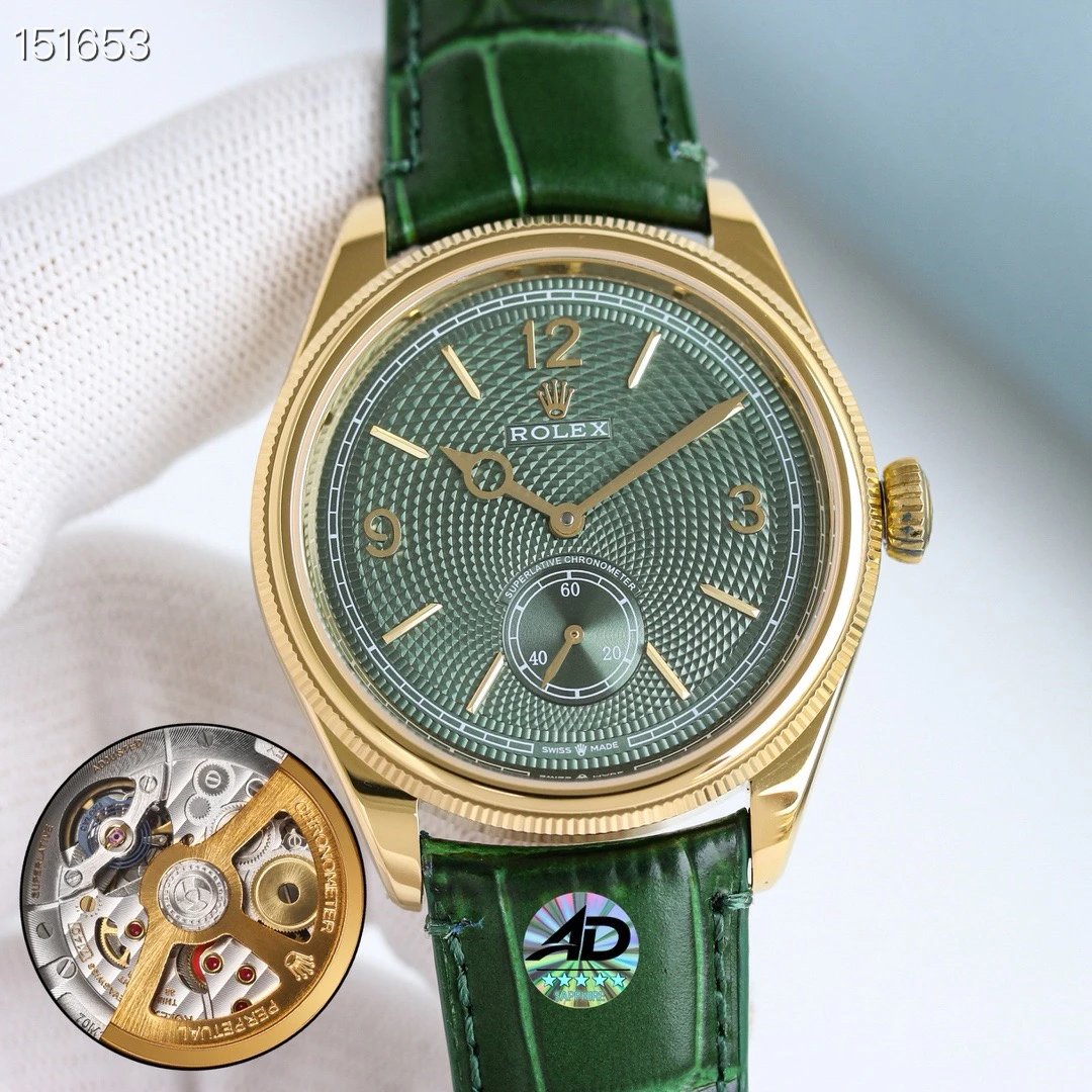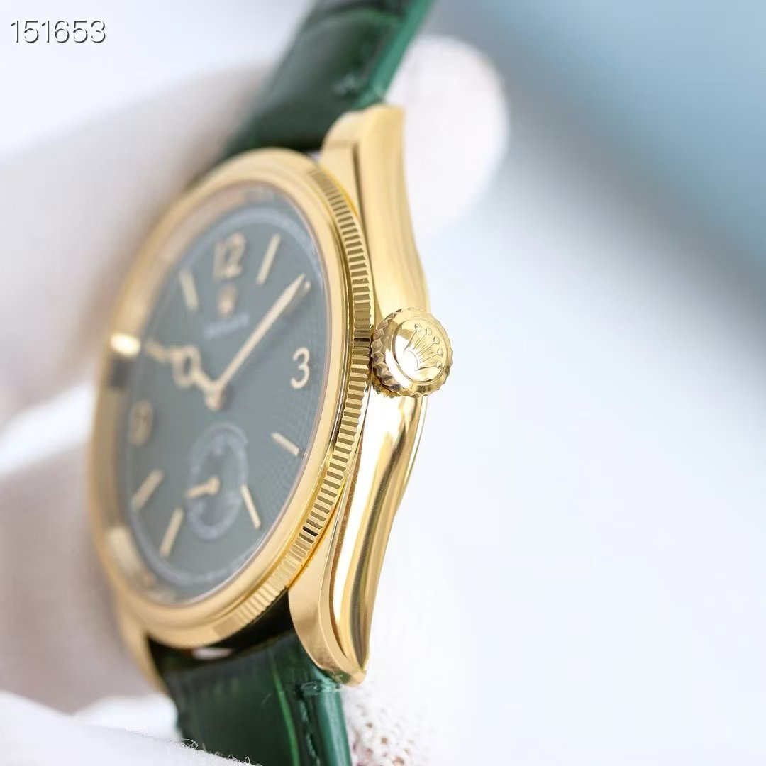 Rolex-1908 Perpetual 39mm Yellow Gold/Leather Green Dial R+F Cal.7140 Automatic