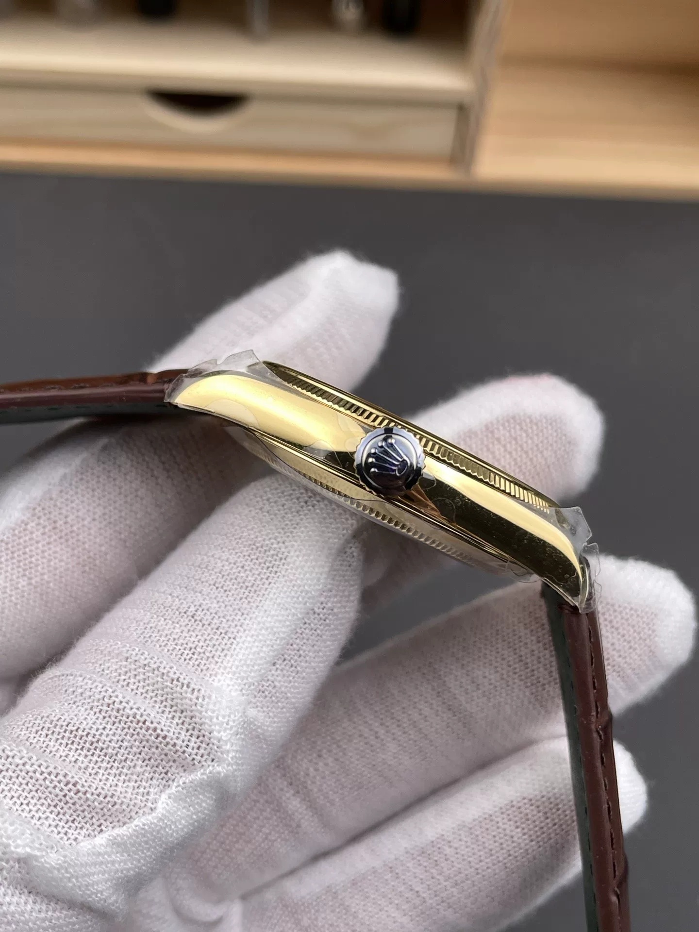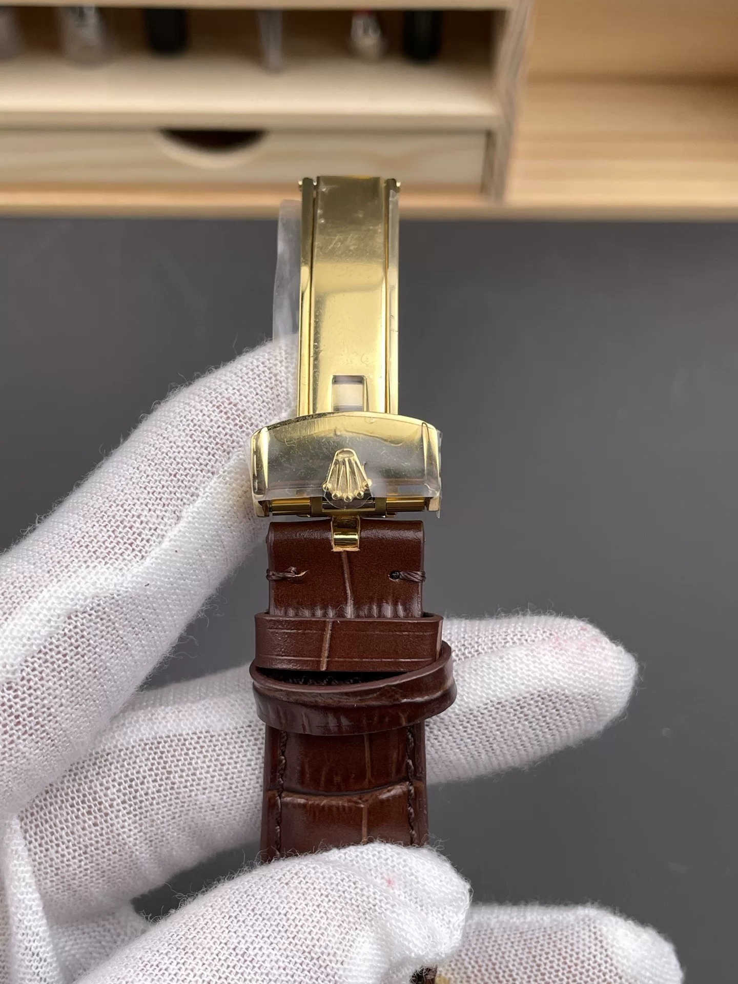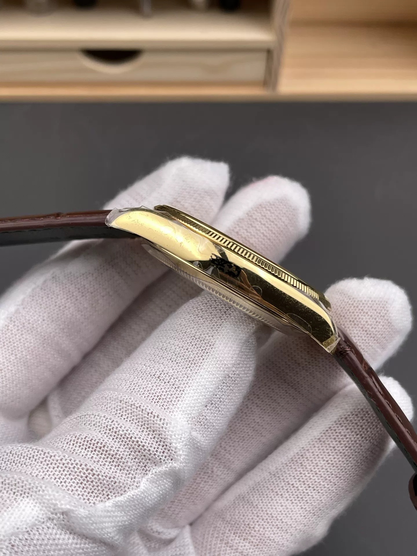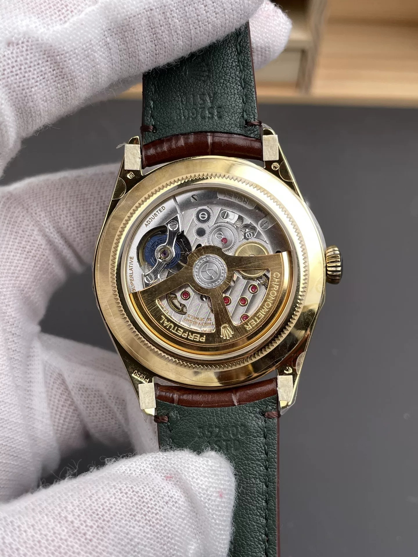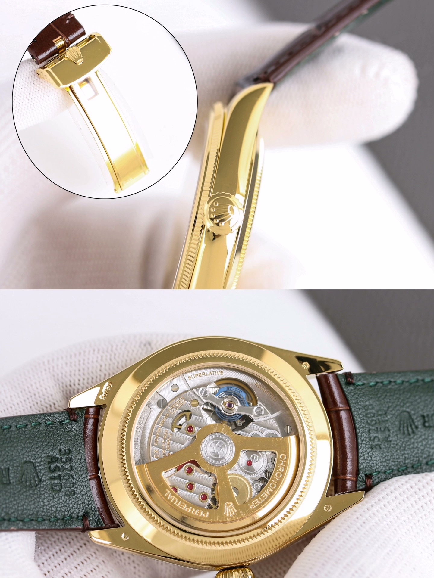 Rolex-1908 Perpetual 39mm Yellow Gold/Leather Green Dial R+F Cal.7140 Automatic