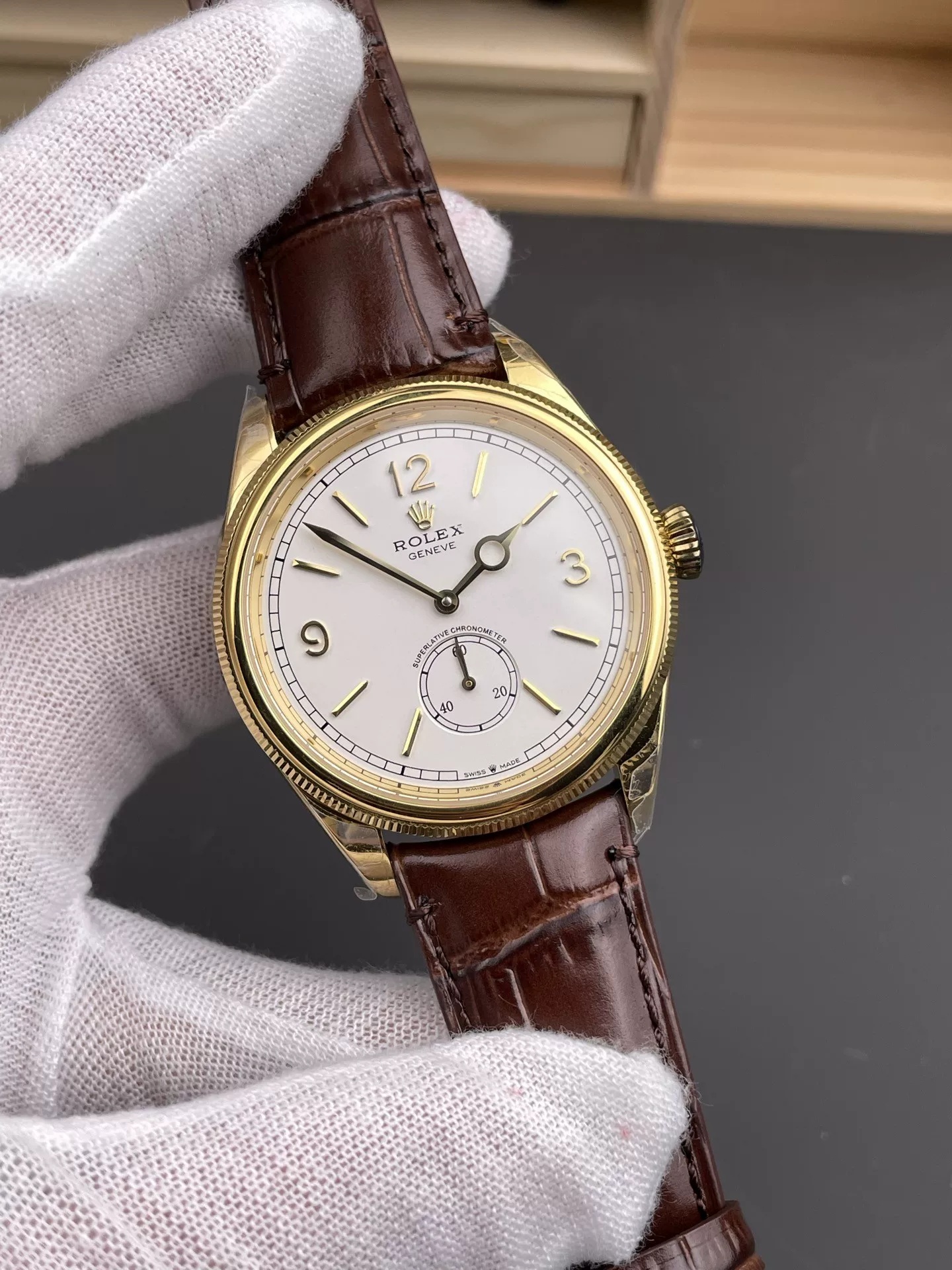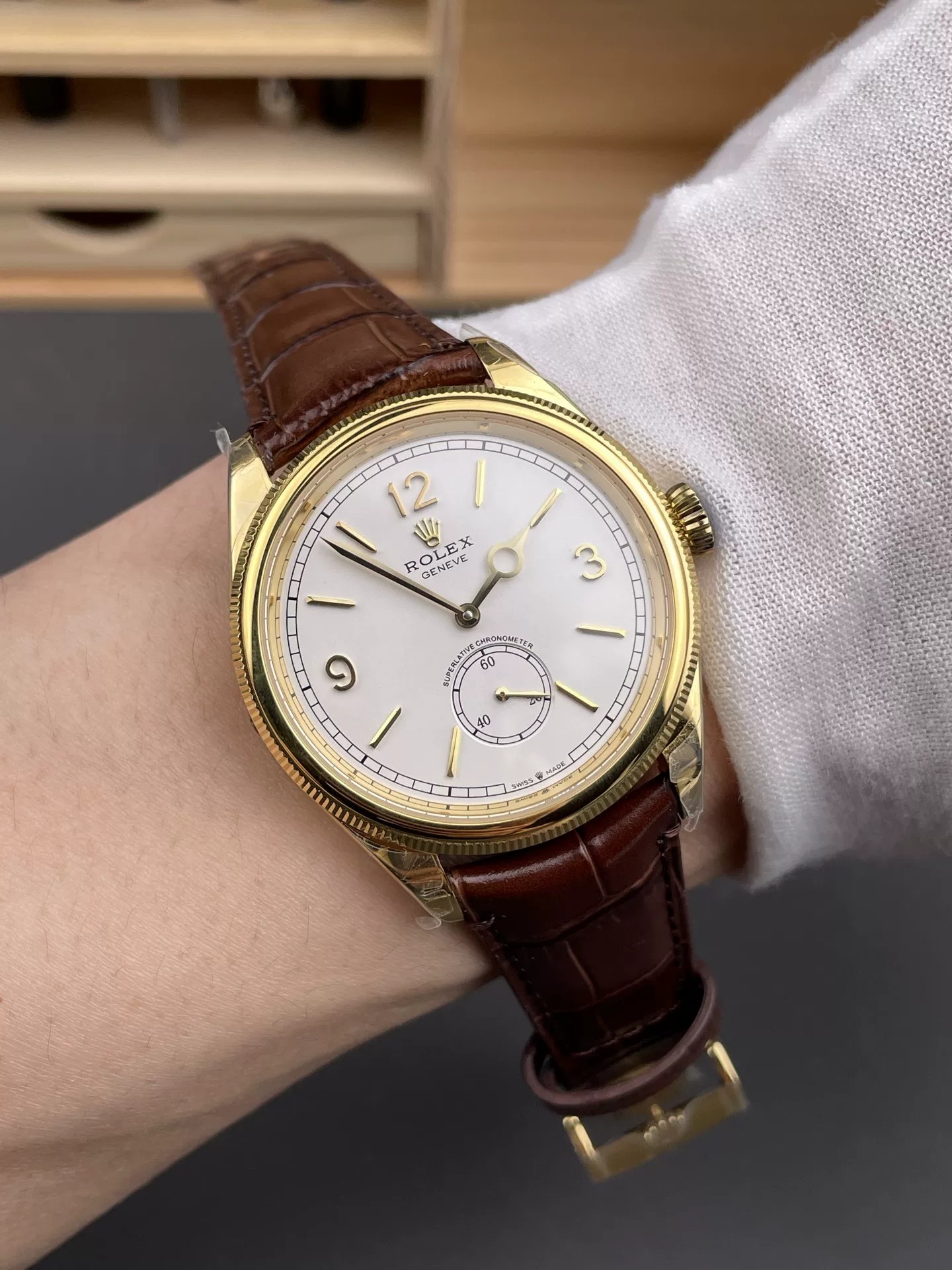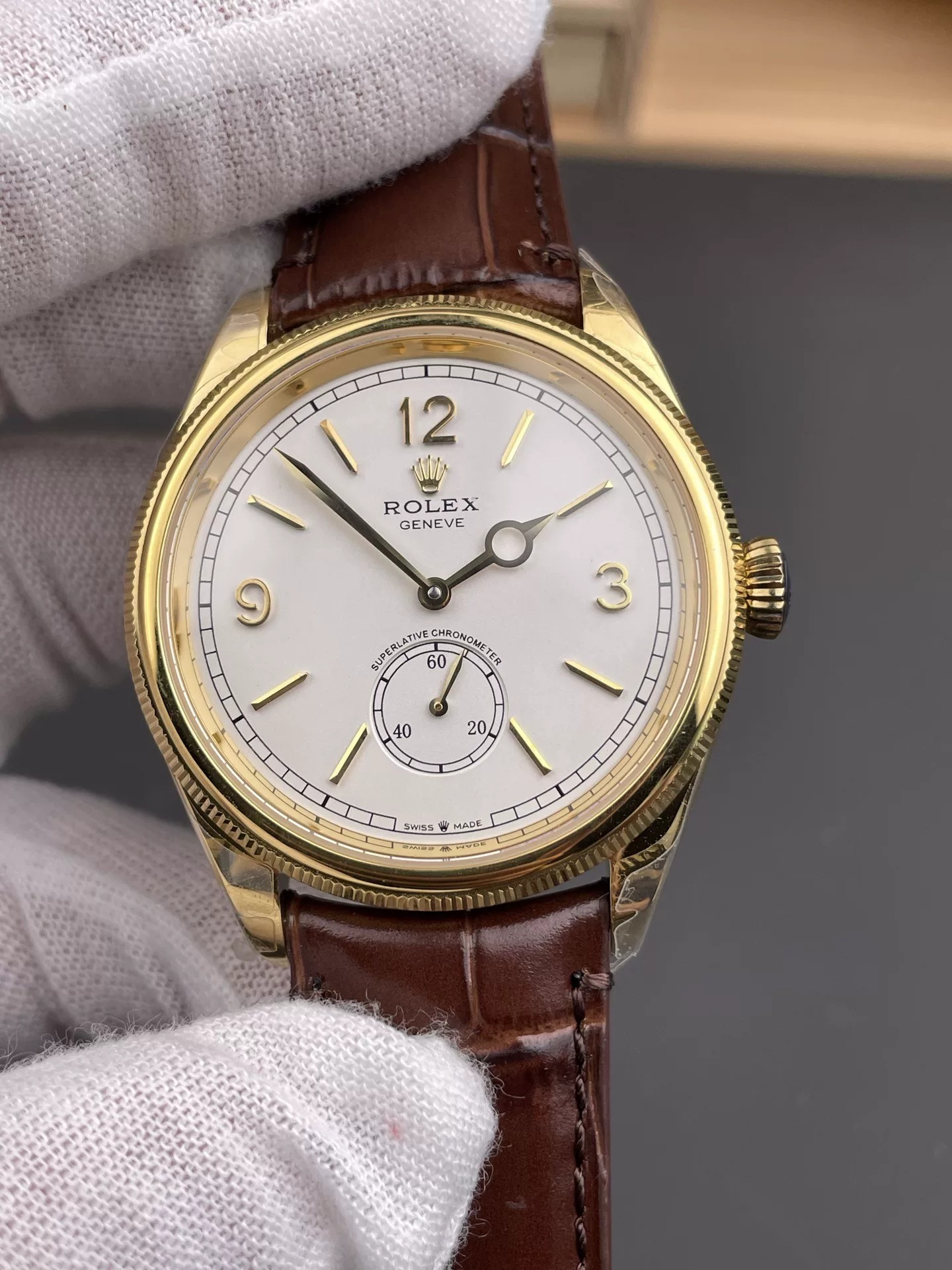 Rolex-Cellini Date 39mm Rose Gold/Leather White Dial Stick Markers MKSF AS3165 Automatic