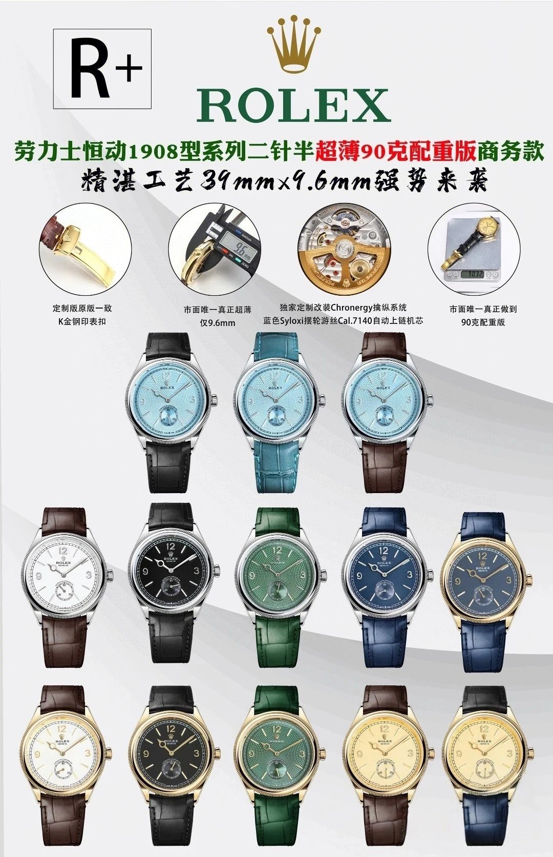 R+ Factory 1908 Leather Strap Series: 1:1 Super Clone,Size(39mm*9.6mm) And Weight(90g) As Geniune