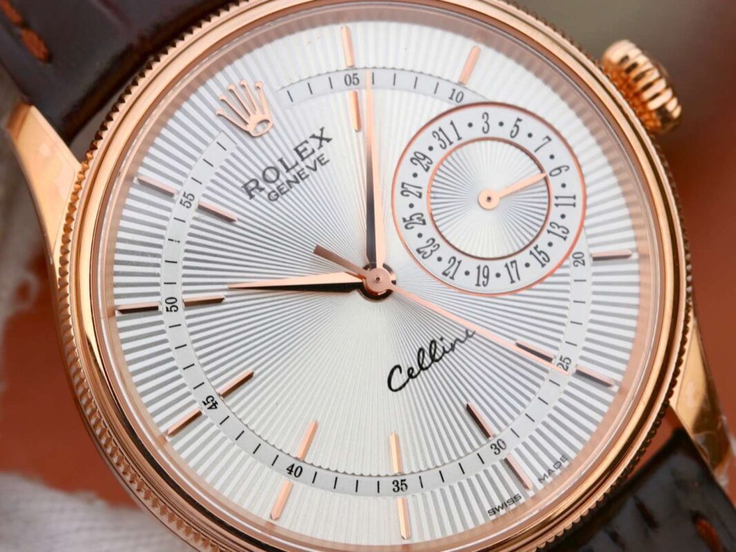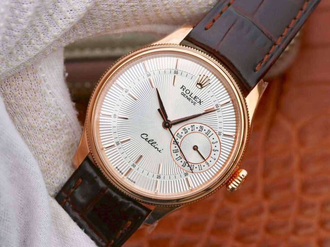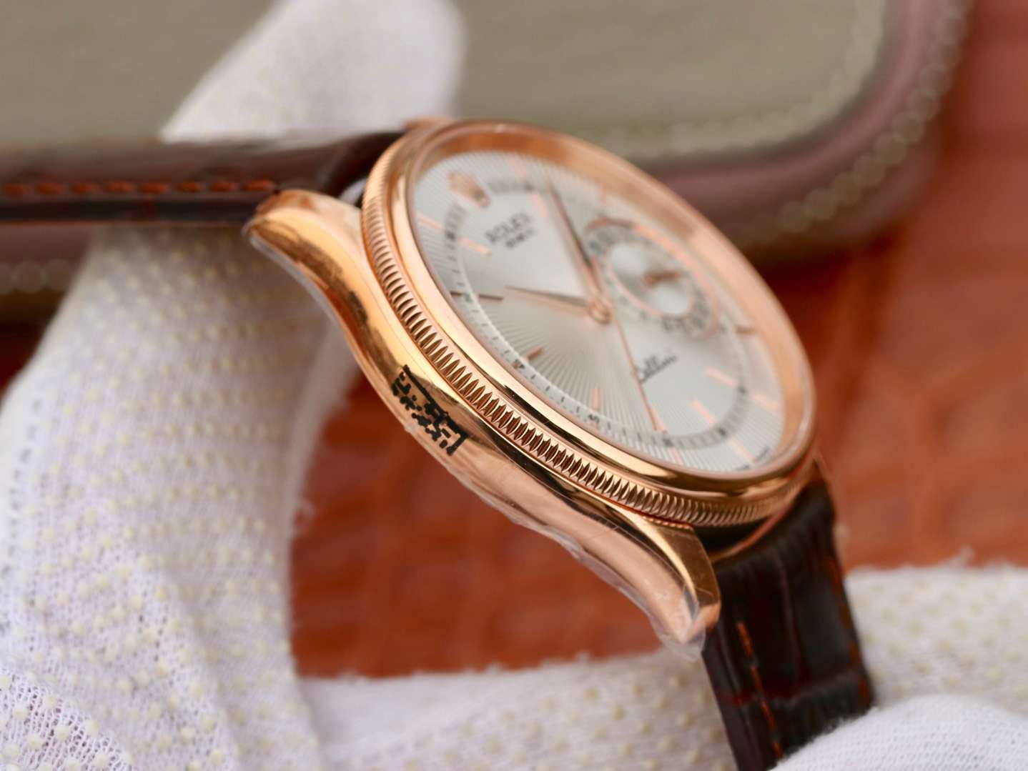 Rolex-Cellini Date 39mm Rose Gold/Leather Black Dial Stick Markers MKSF AS3165 Automatic
