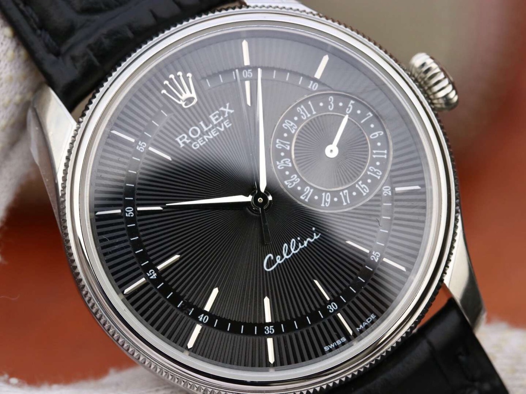 Rolex-Cellini Date 39mm Rose Gold/Leather White Dial Stick Markers MKSF AS3165 Automatic