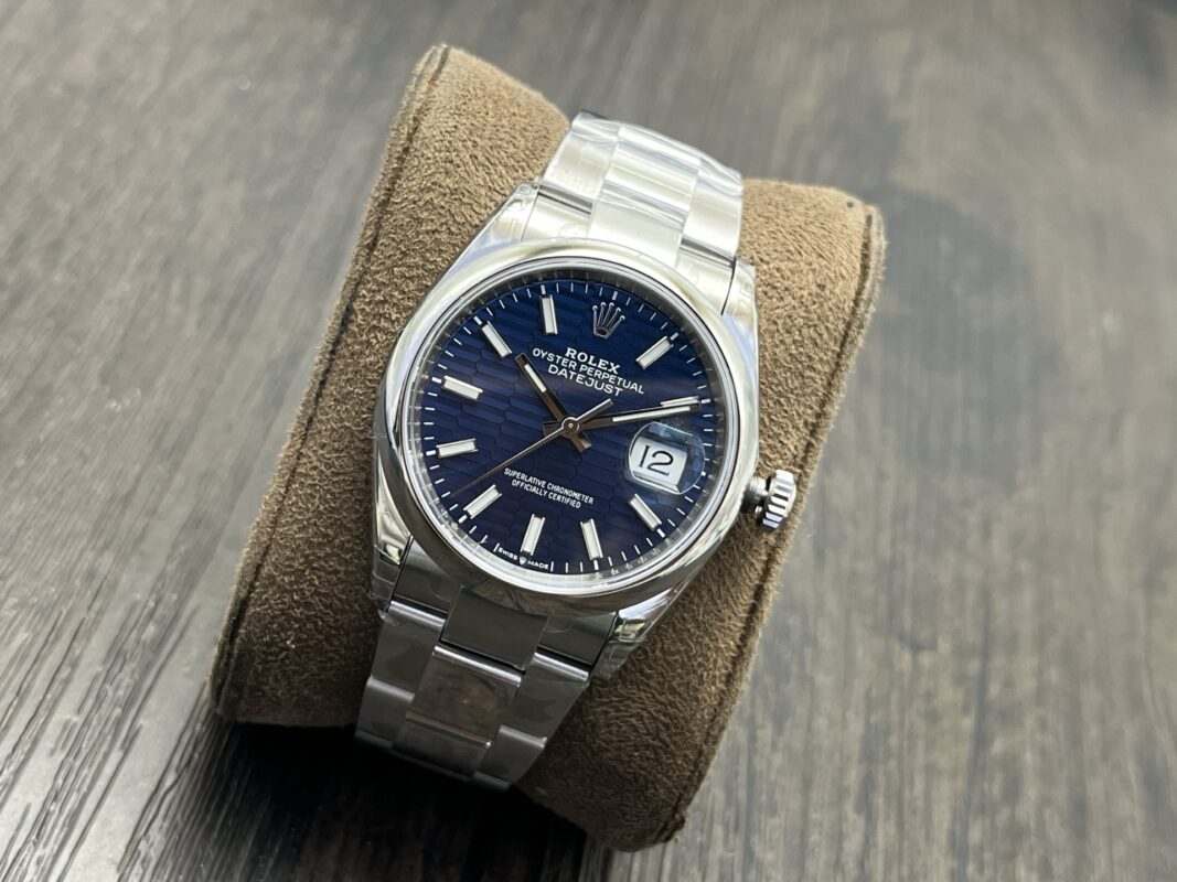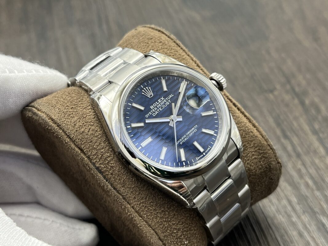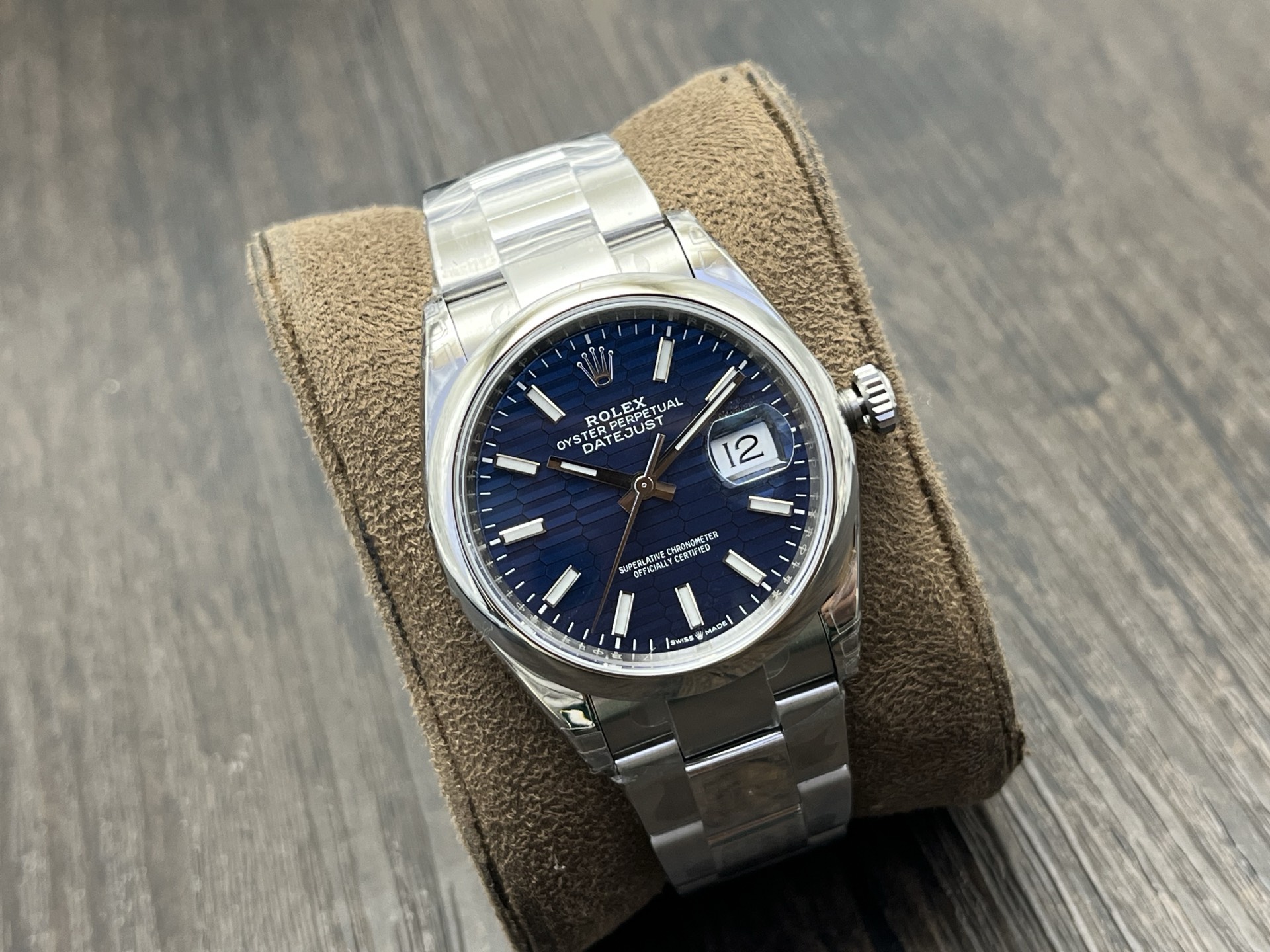 DIAL COLOR: Blue Textured Dial with Stick Markers (Blue Superlume Applied on Hands and Markers)