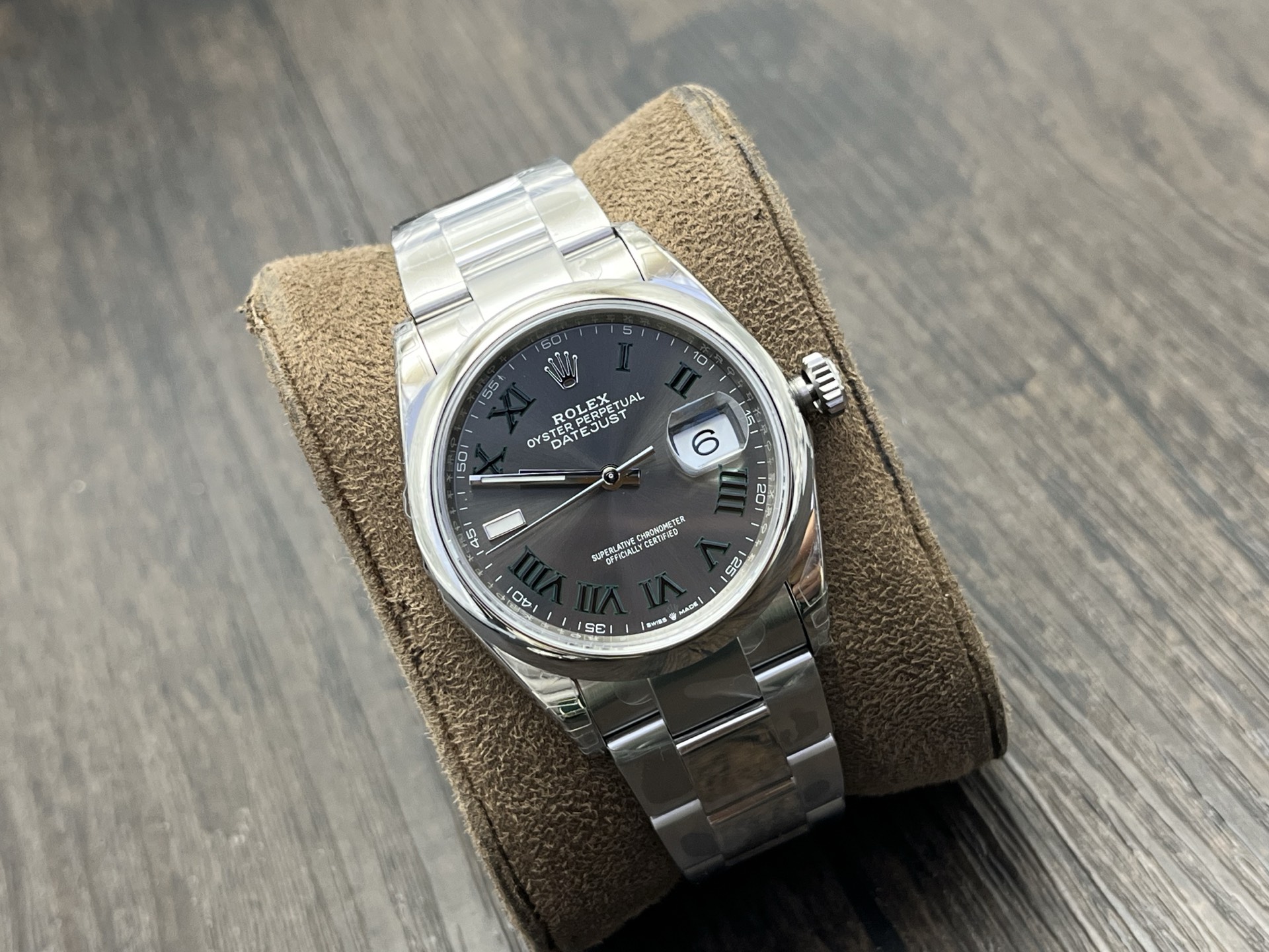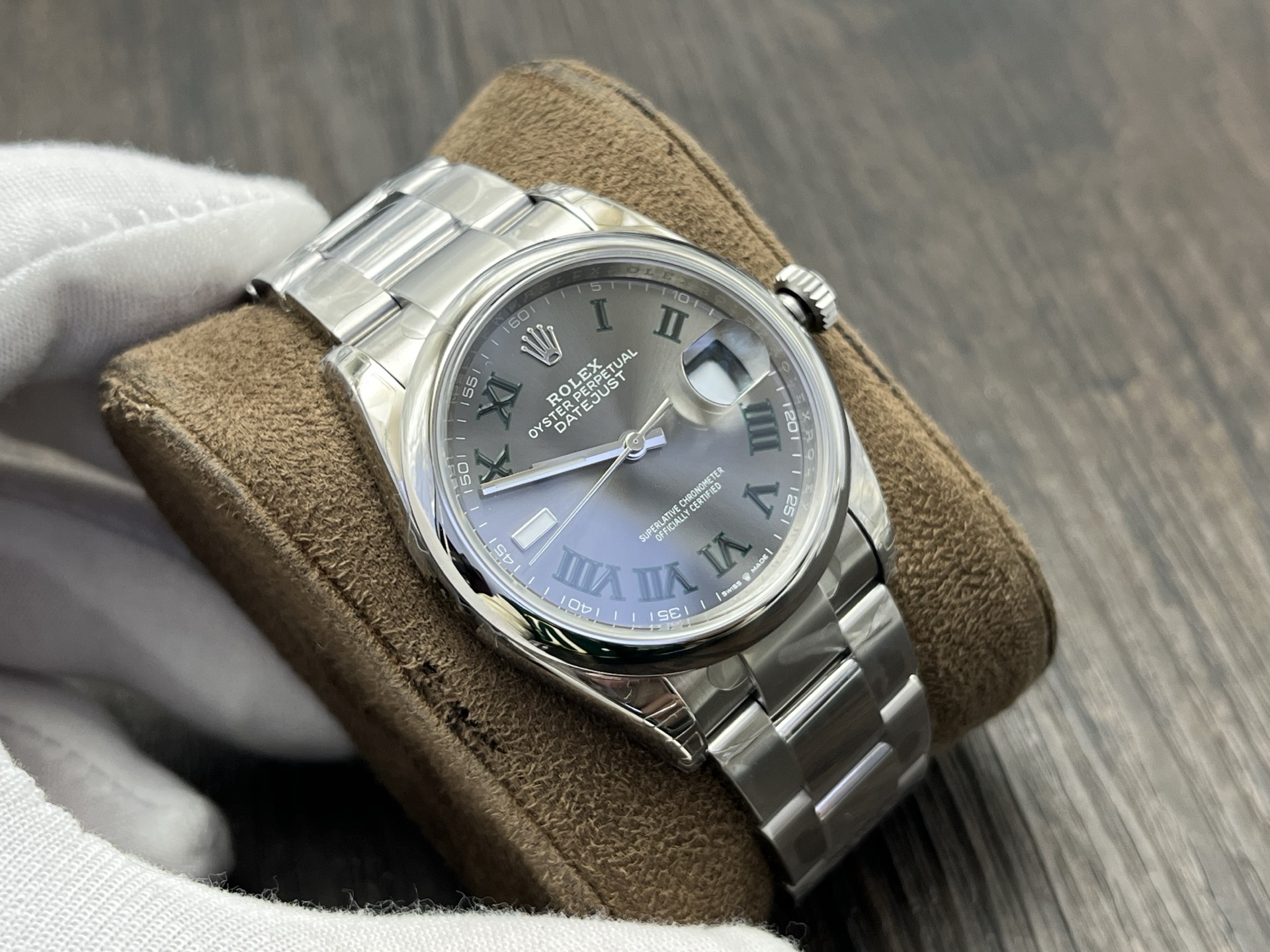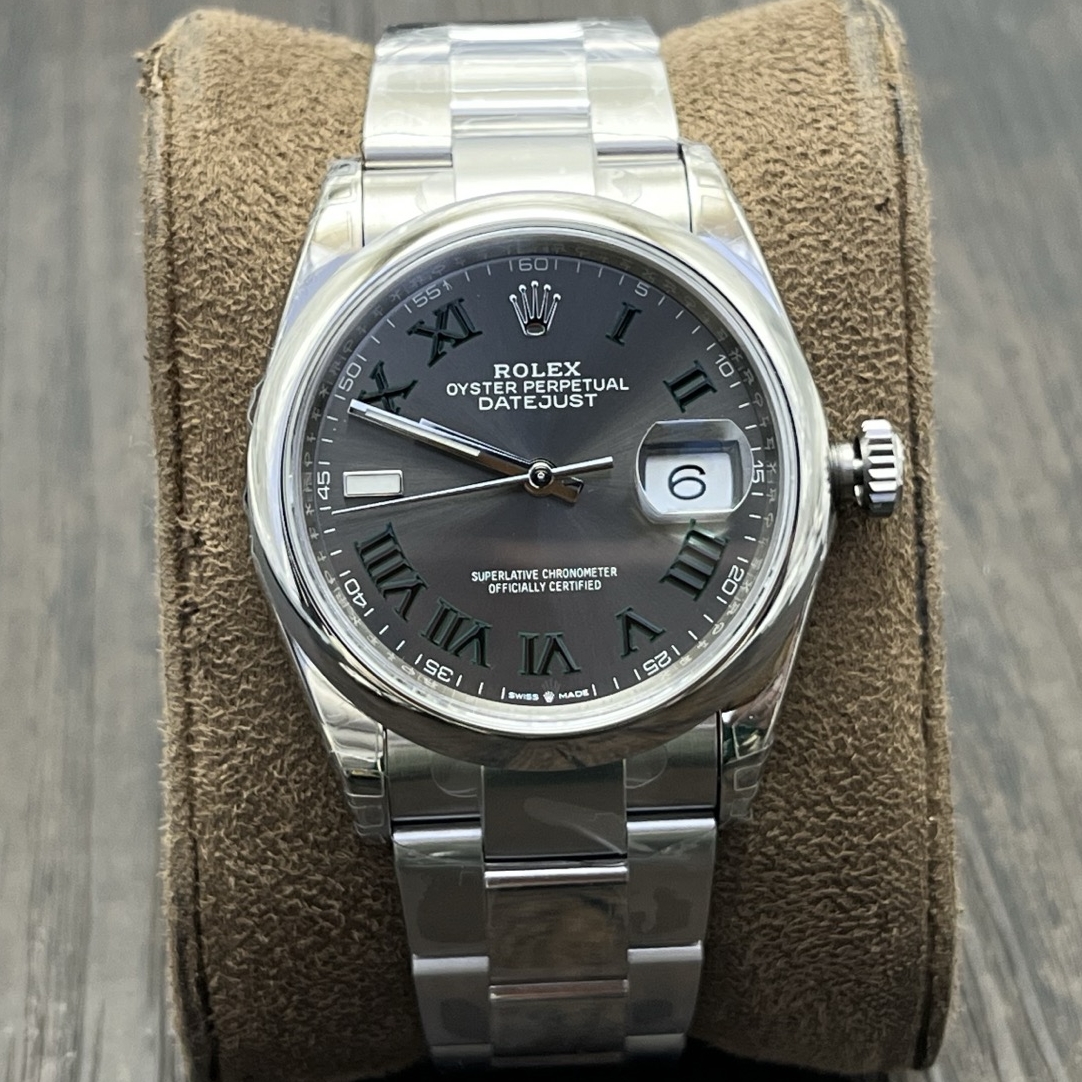 Rolex-Datejust 126200 36mm Oyster stainless Steel/Steel Grey Wimbledon Dial Roman Markers VSF DD3235 Automatic