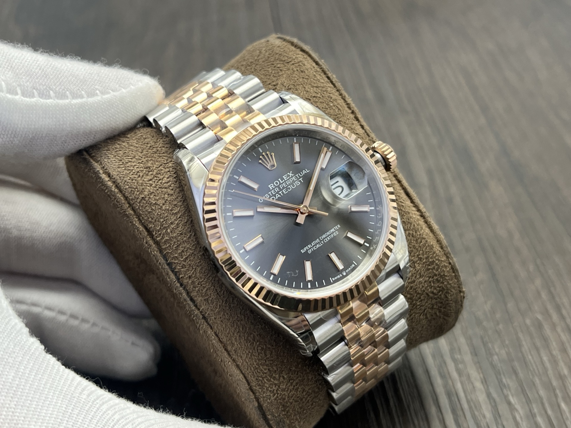 Rolex-Datejust 126231 36mm Jubilee Rose Gold/Steel Grey Dial Stick Markers VSF DD3235 Automatic