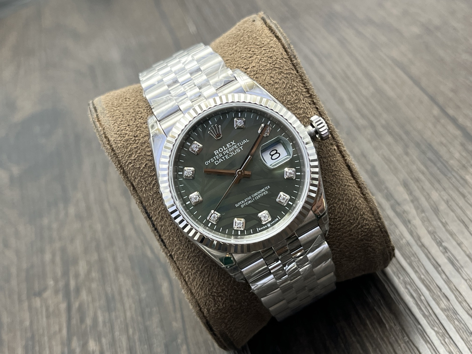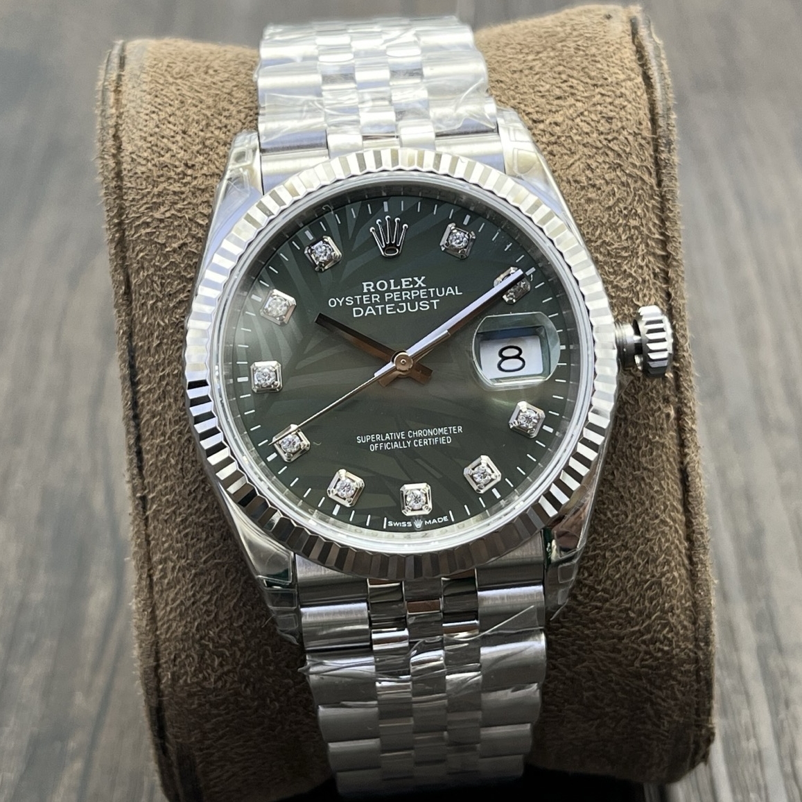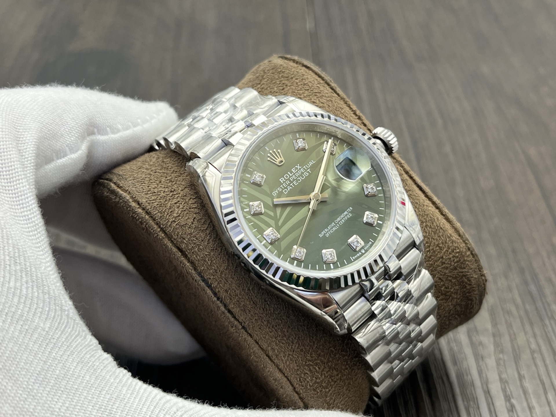 DIAL COLOR:Green Palm Motif Dial With Diamond Markers
