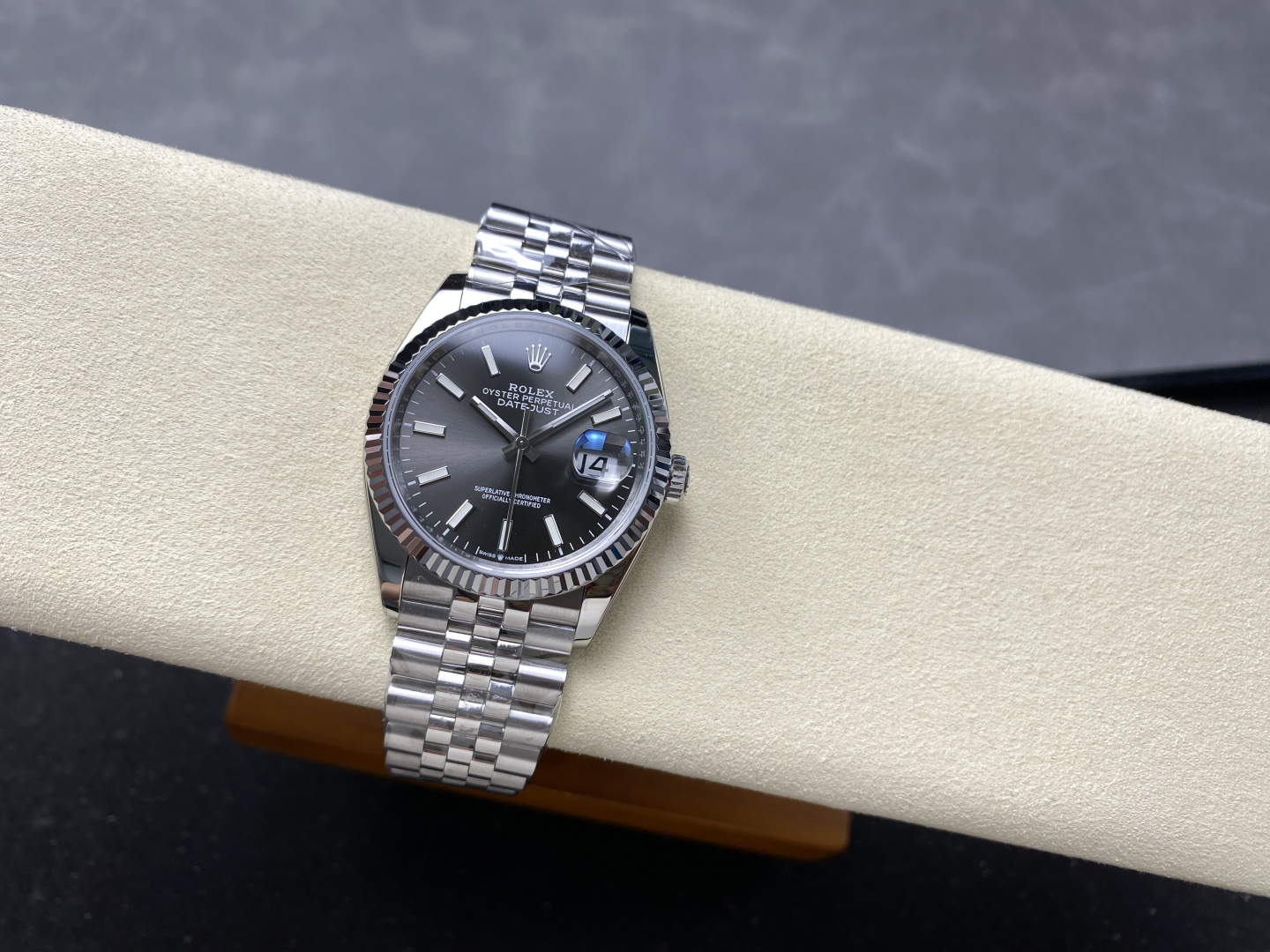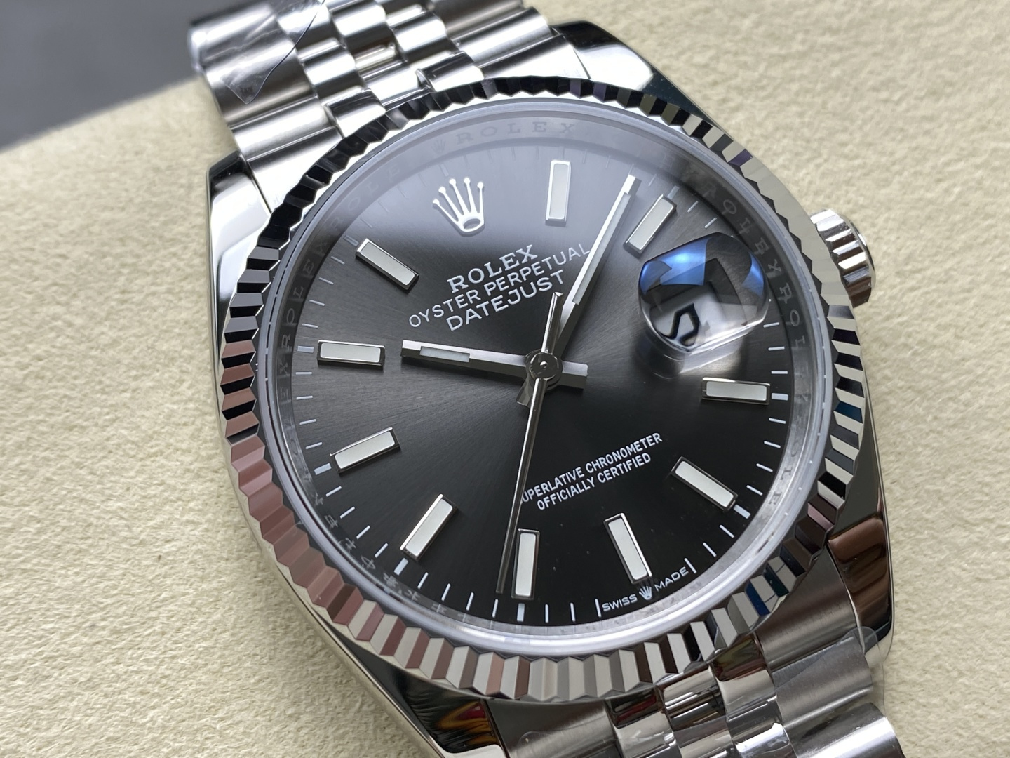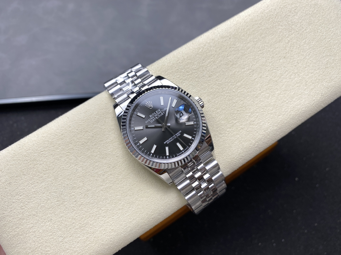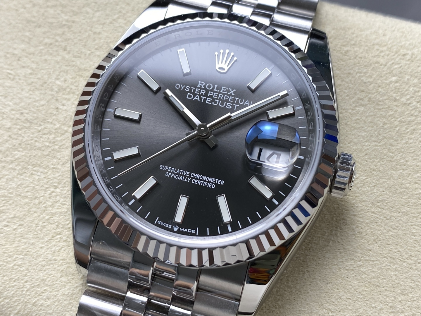 DIAL COLOR:Grey Dial With Stick Markers(Blue Superlume Applied on Hands and Markers)