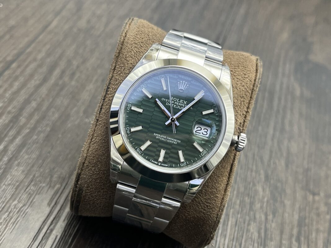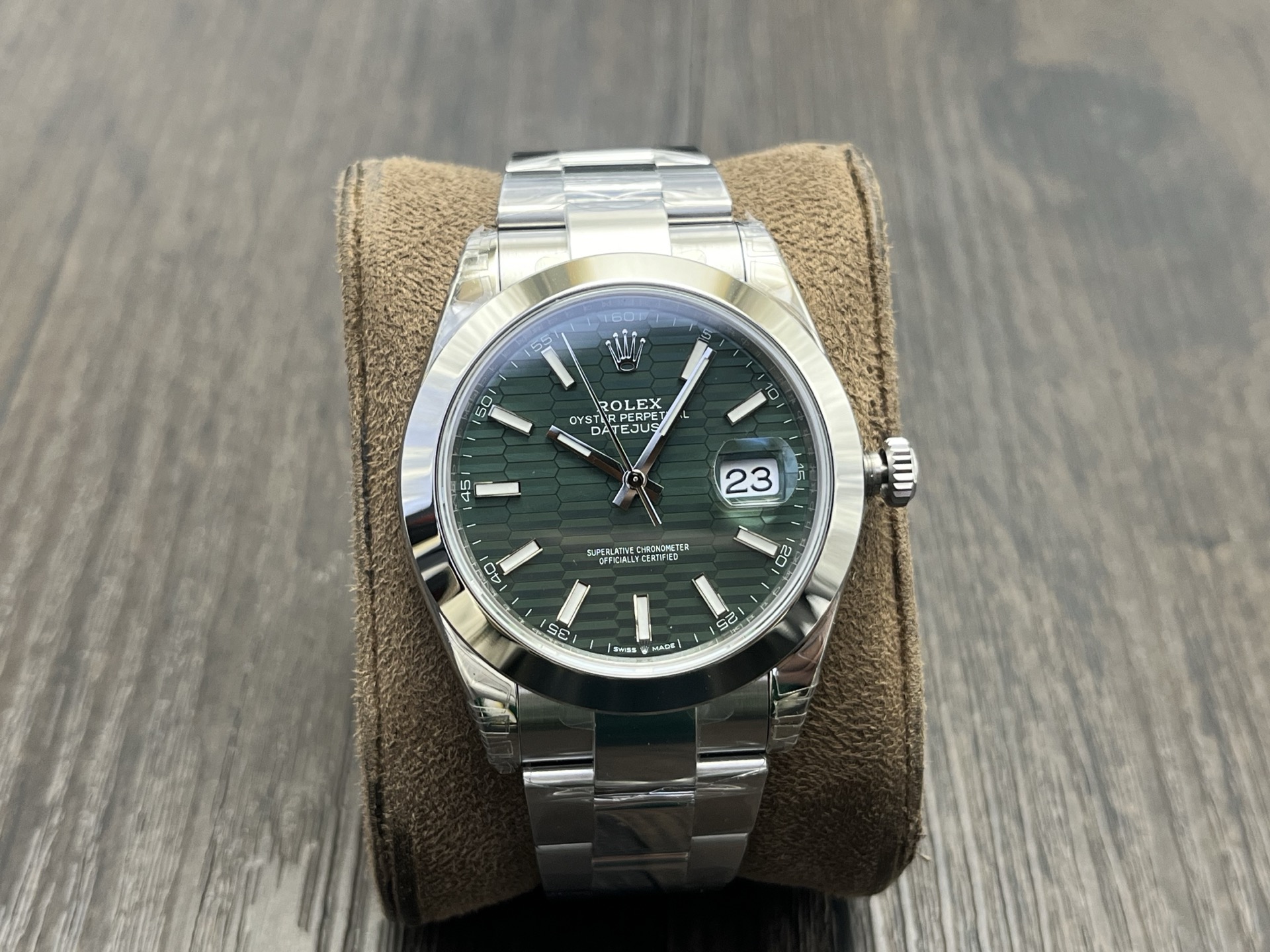 DIAL COLOR:Mint Green Fluted Dial With Stick Markers(Blue Superlume Applied on Hands and Markers)