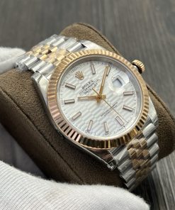 BRACELET:Tow Tone 18K Rose Gold Plated On Solid Stainless Steel 904L Jubilee Bracelet with Deployant Buckle