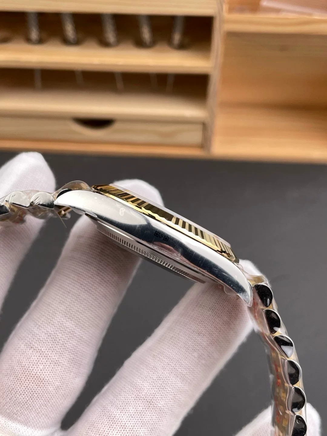 BEZEL:Yellow Gold Fluted Bezel