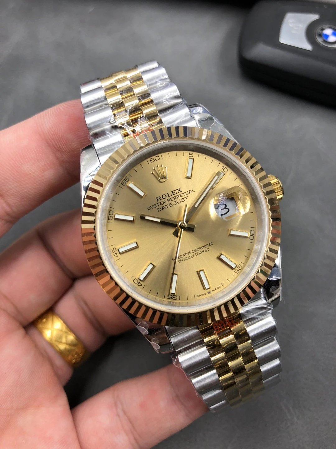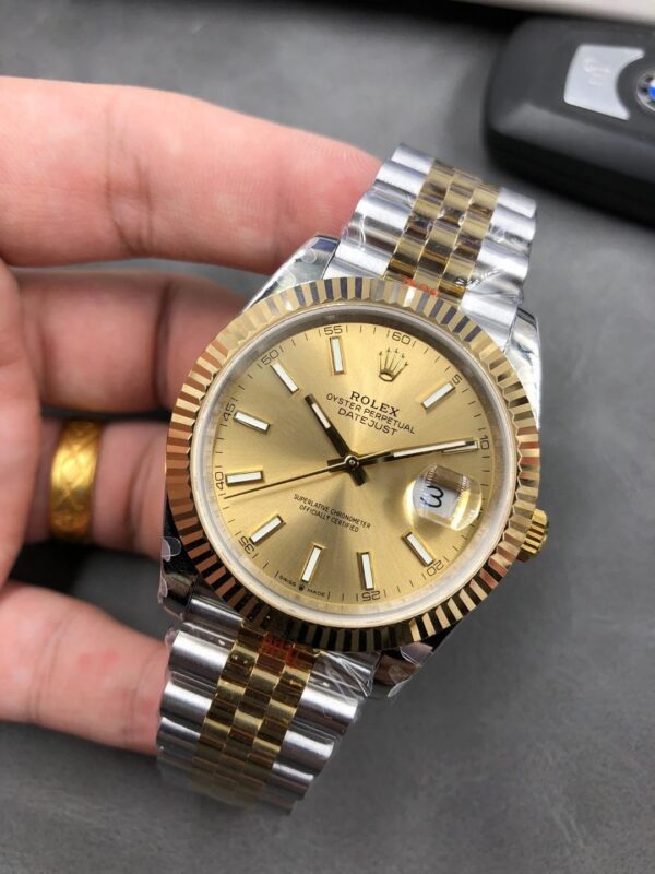 DIAL COLOR:Champagne(Gold) Dial With Stick Markers(Blue Superlume Applied on Hands and Markers)