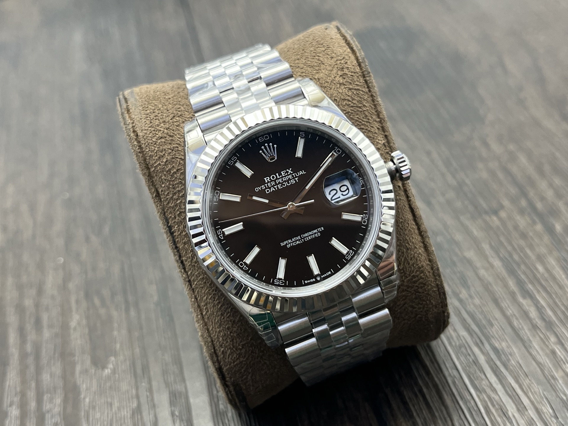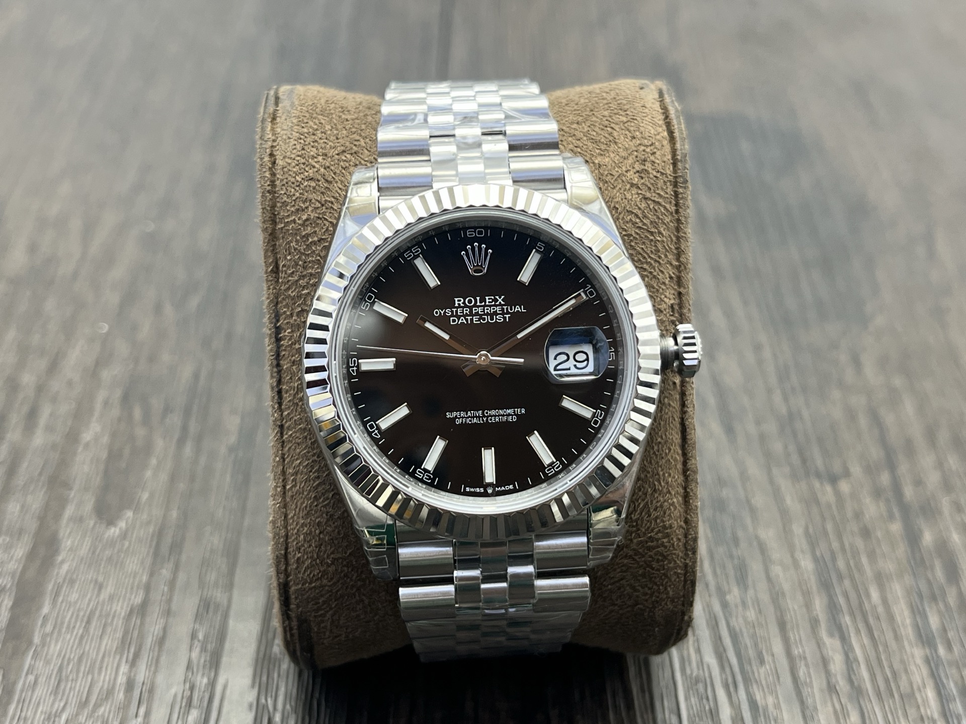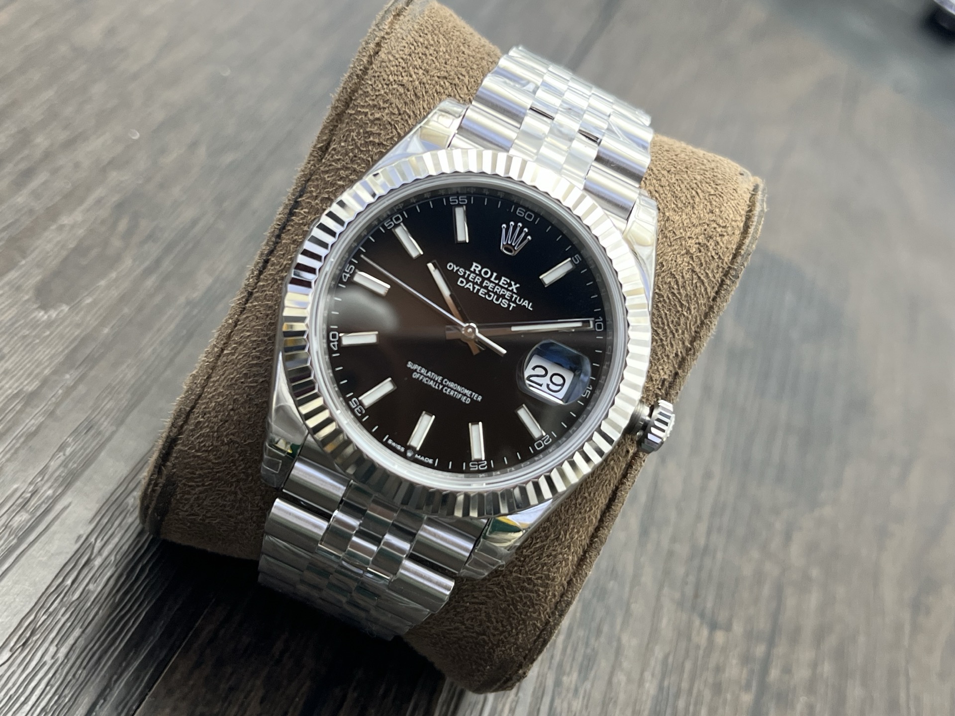 DIAL COLOR:Black Dial With Stick Markers(Blue Superlume Applied on Hands and Markers)