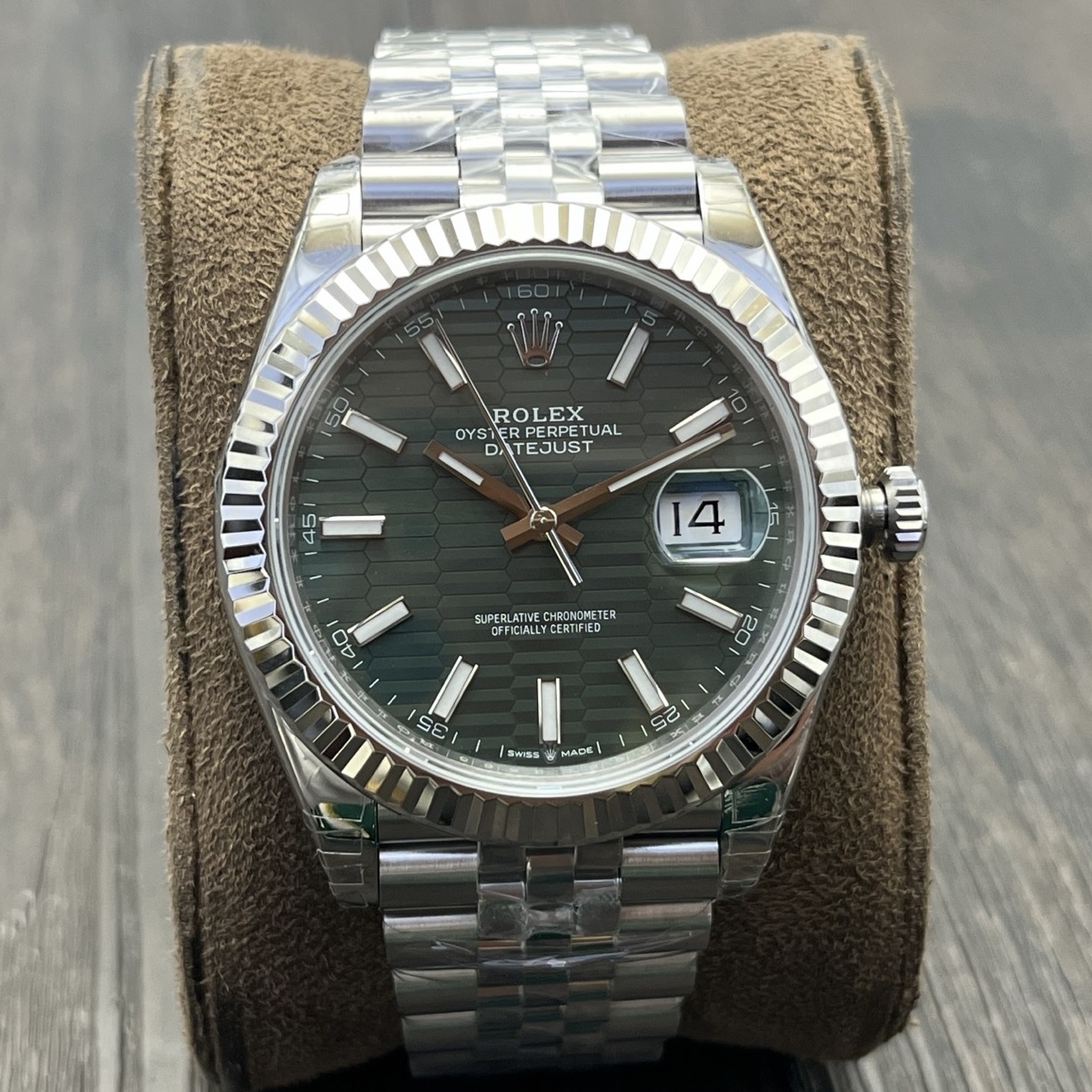 DIAL COLOR:Mint Green Fluted Dial With Stick Markers(Blue Superlume Applied on Hands and Markers)