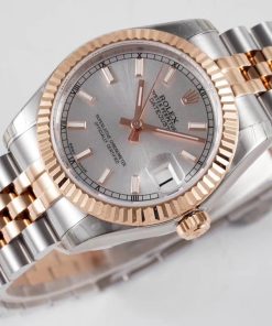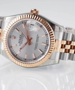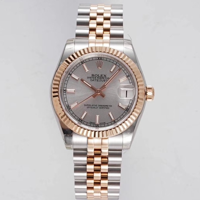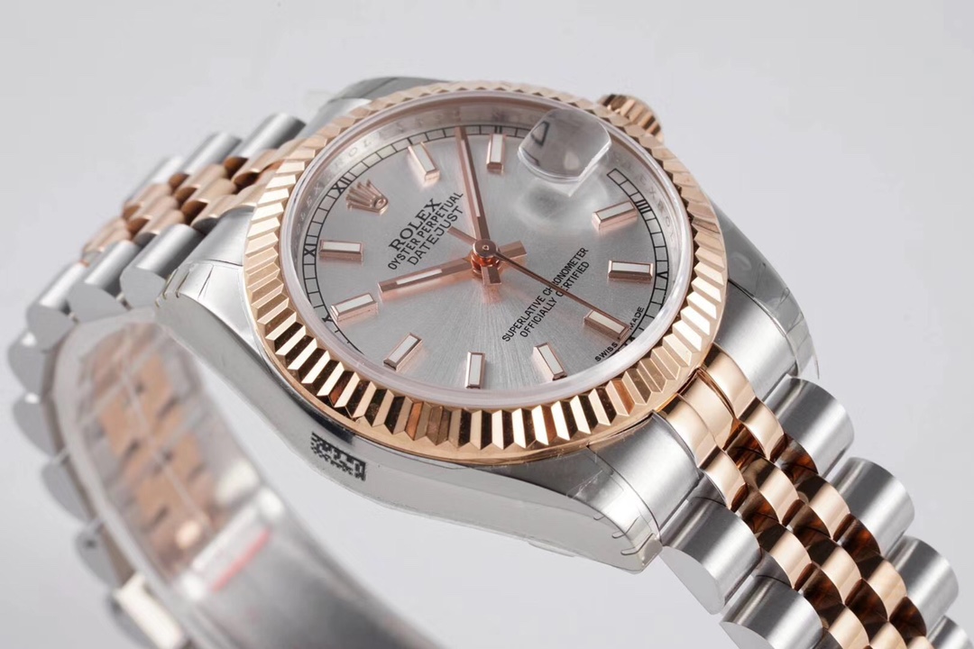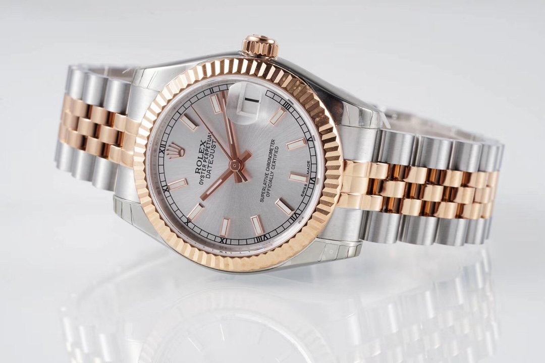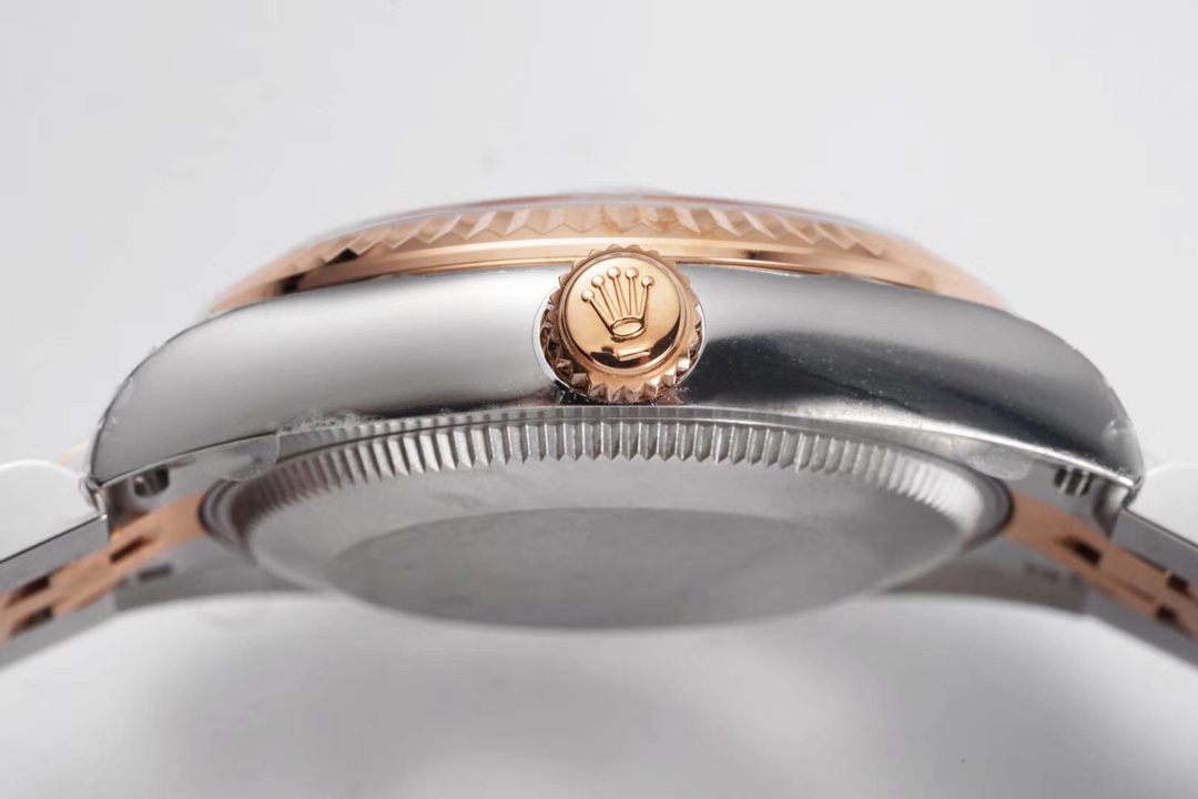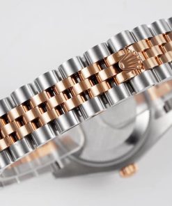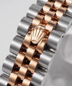 BRACELET:Two Tone 18K Rose Gold Plated Solid 904L Stainless Steel Jubilee Bracelet With Deployant Buckle