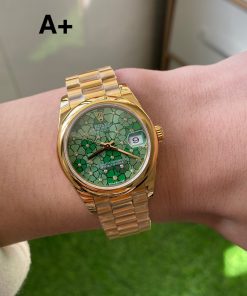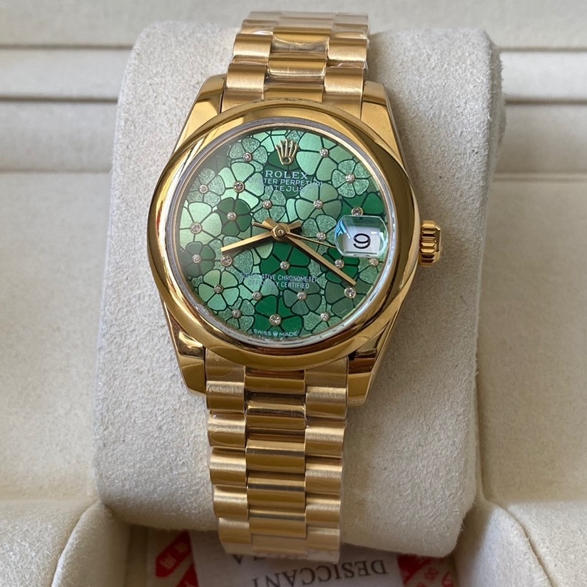 Rolex-Datejust 278248 Ladies 31mm Oyster Yellow Gold Olive Green Floral Dial A+F A2236 Automatic