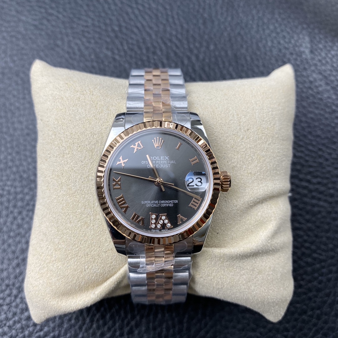 BRACELET:Tow Tone 18K Rose Gold Plated Solid 904L Stainless Steel Jubilee Bracelet With Deployant Buckle
